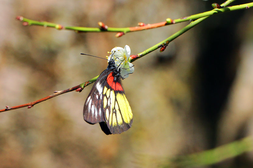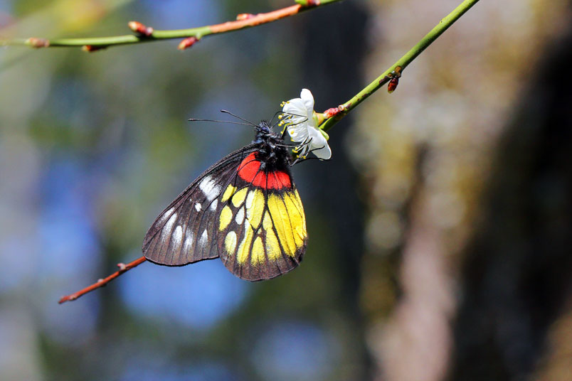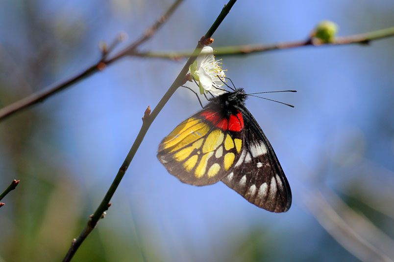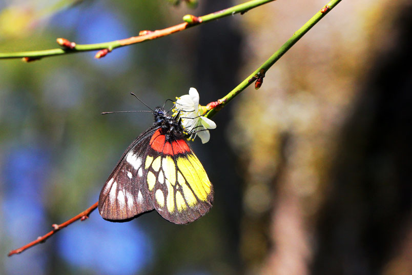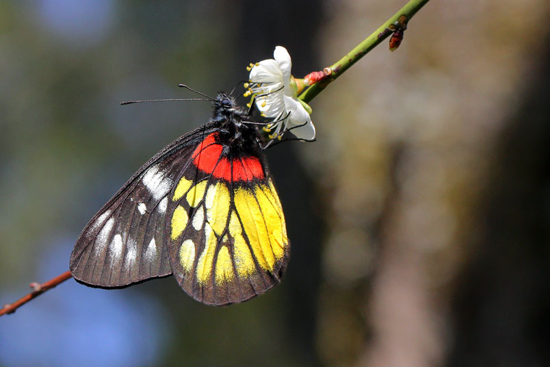 視度最高,紅、黃、黑集於一身的紅肩粉蝶,有著極端的視覺