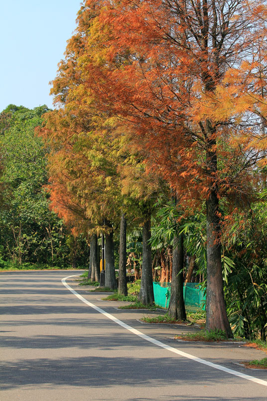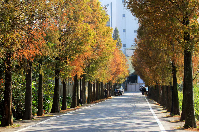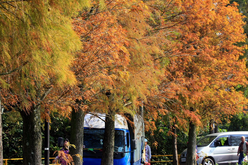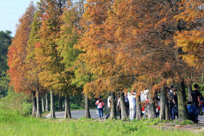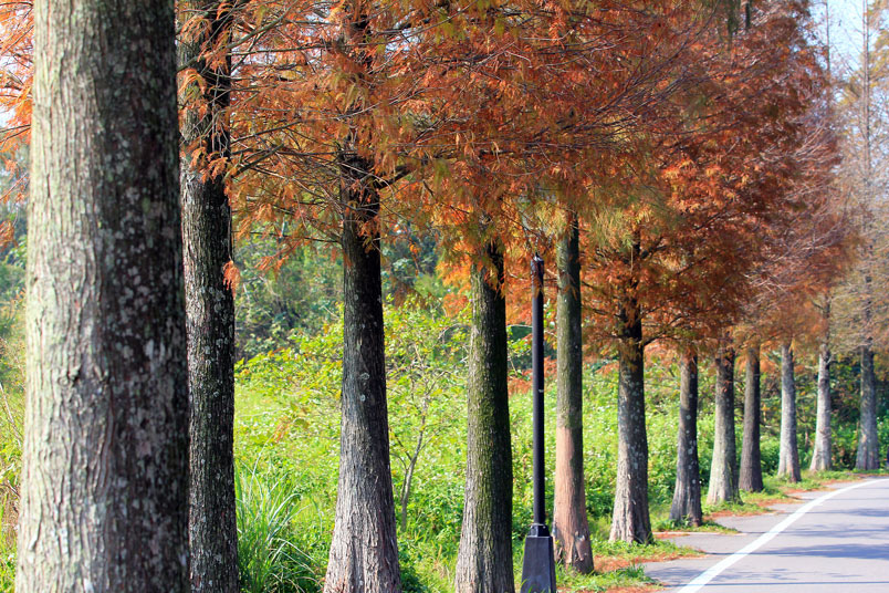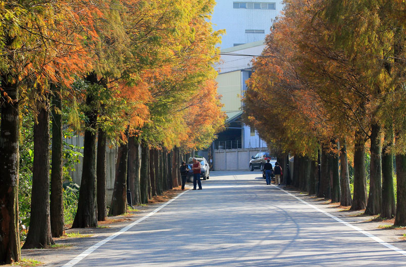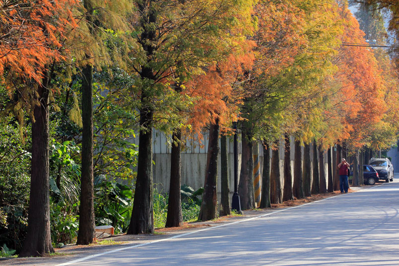 綿延數百公尺的落羽松,整齊的排列在道路兩旁,雖然沒有