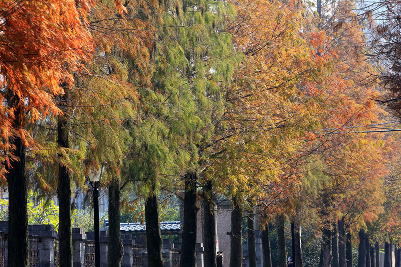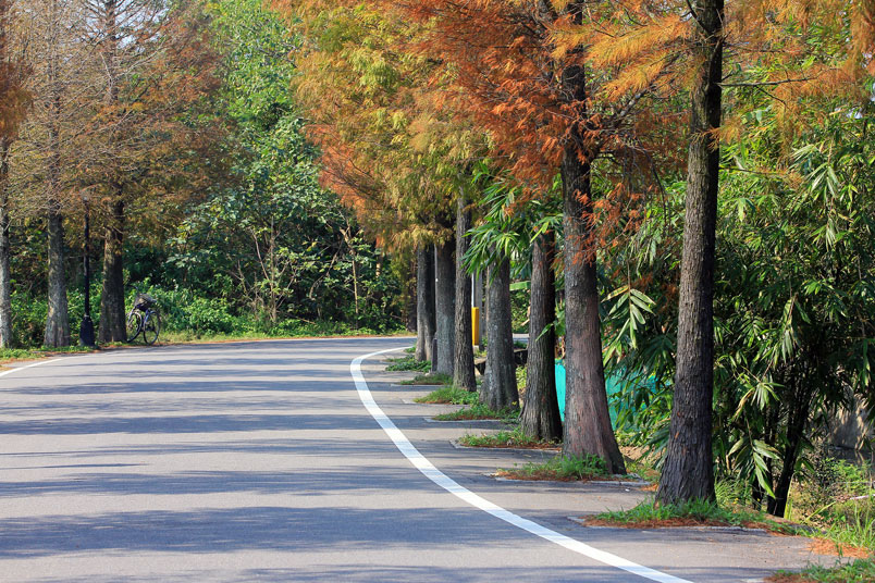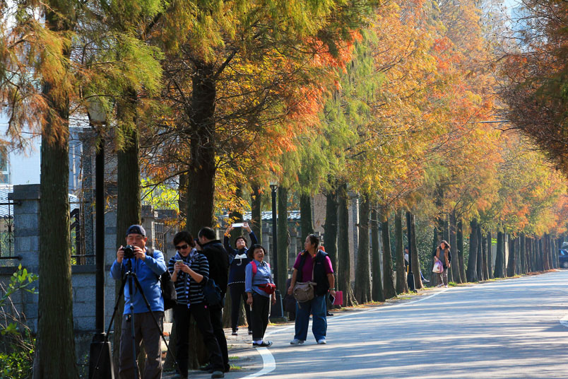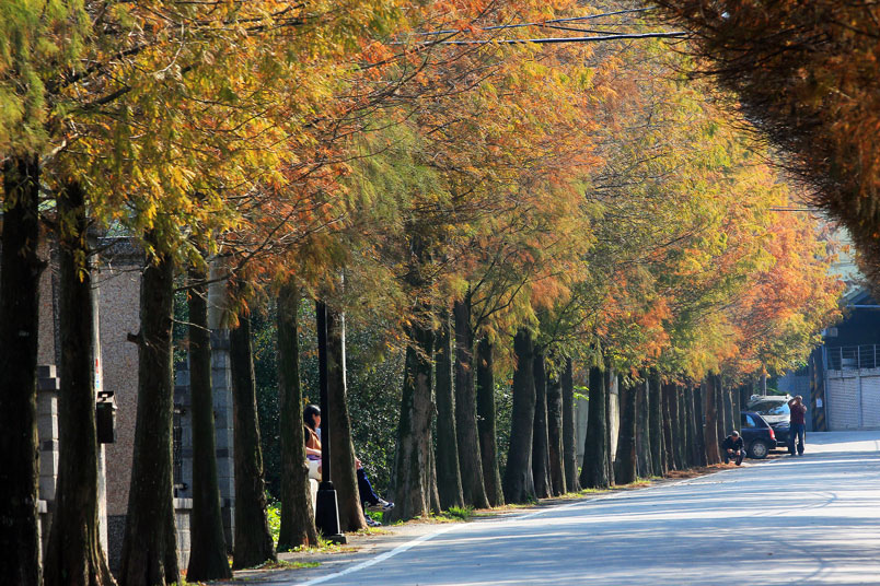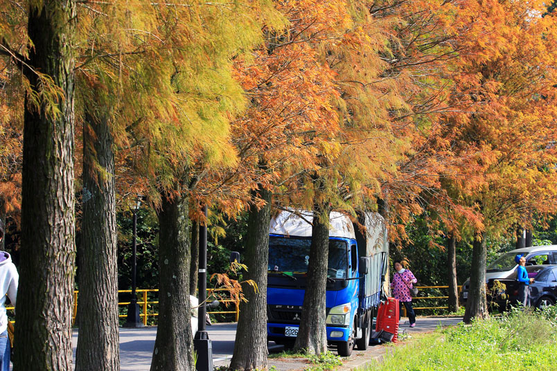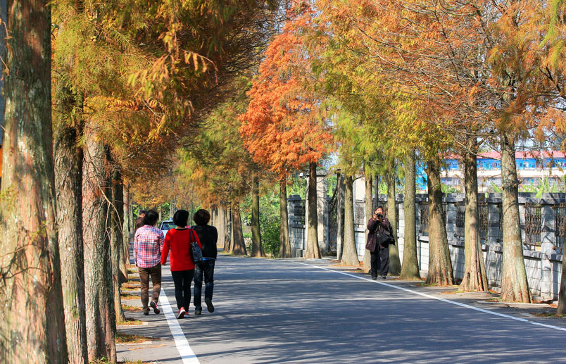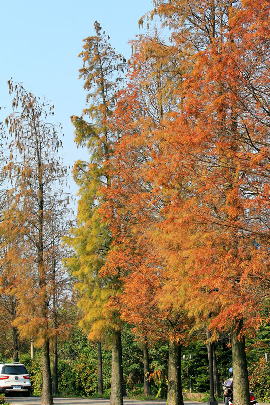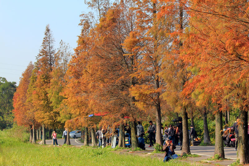 綿延數百公尺的落羽松,整齊的排列在道路兩旁,雖然沒有