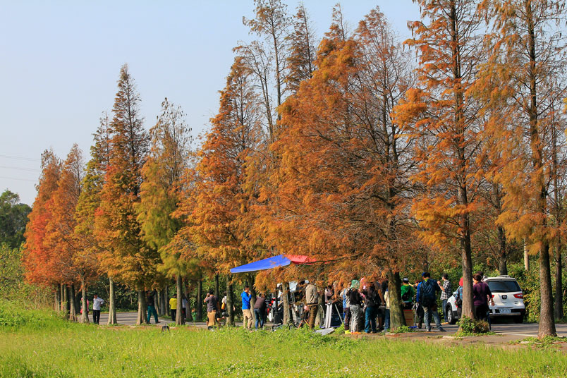 有半個攝影人來取景,心想可能是落羽松尚未變色的因故吧