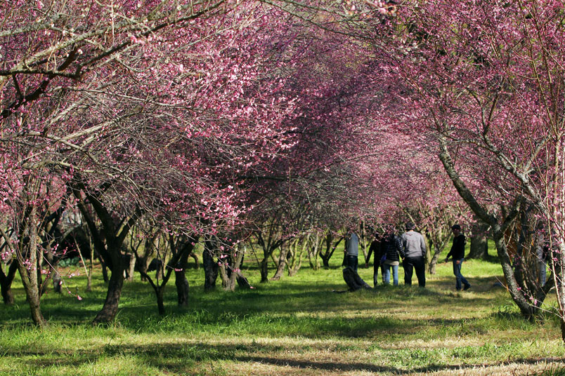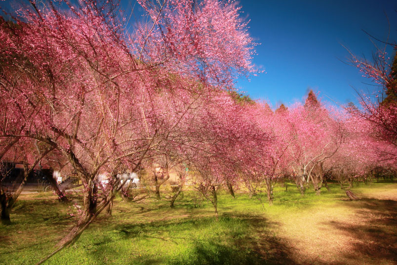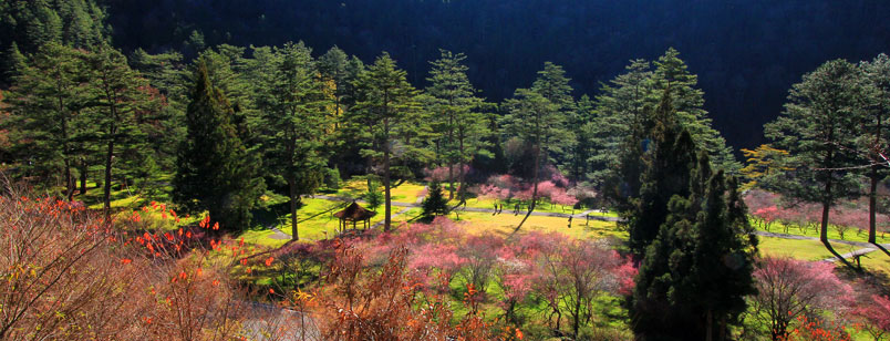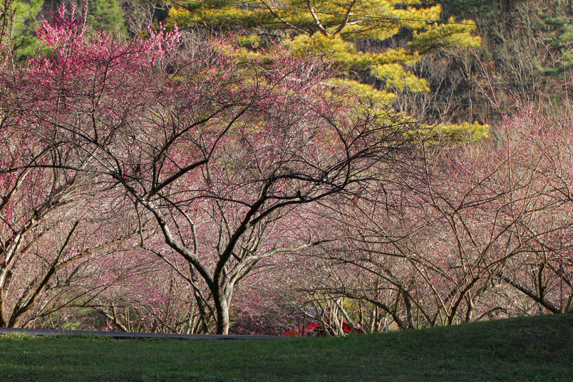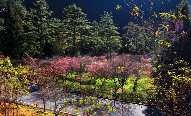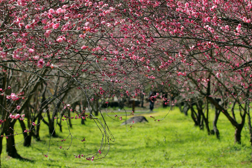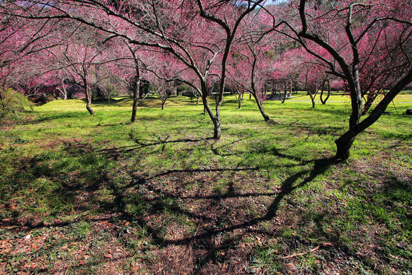 武陵農場內種植新冬至、寒紅、紅牡丹、青軸等多品種梅花。