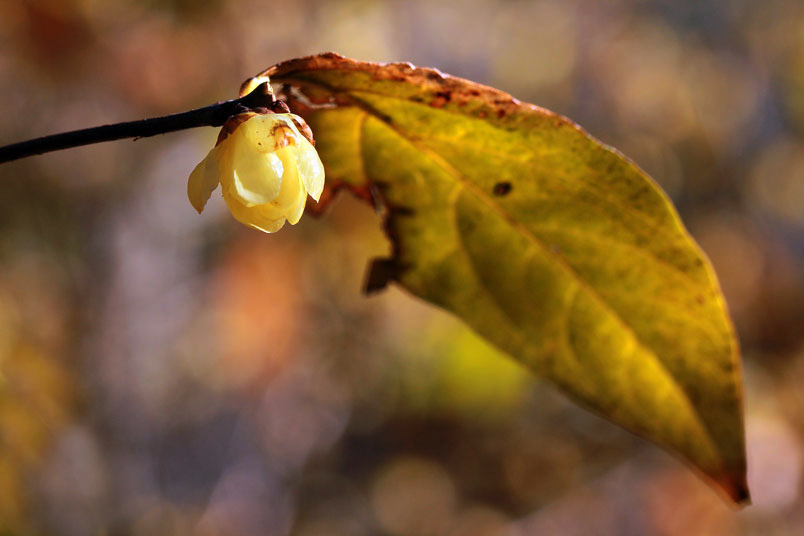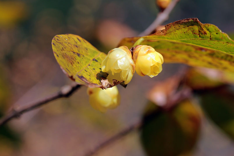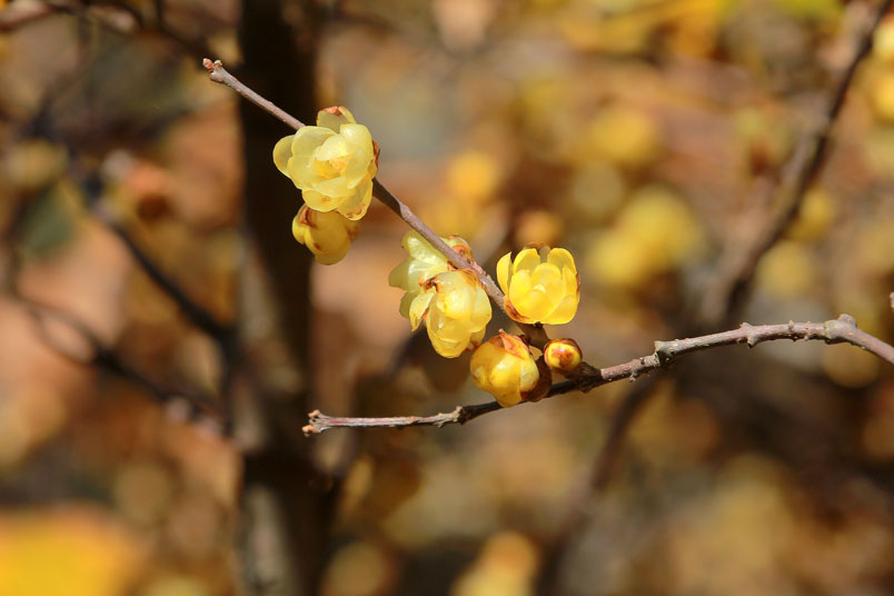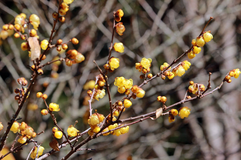 屬落葉灌木,花單生於枝頭兩側,冬季落葉後開花,花黃,具