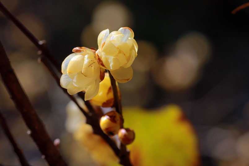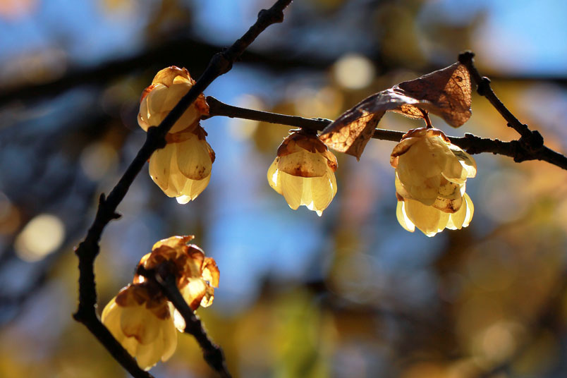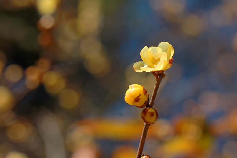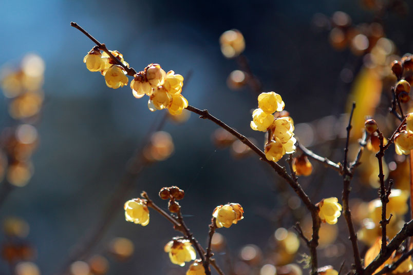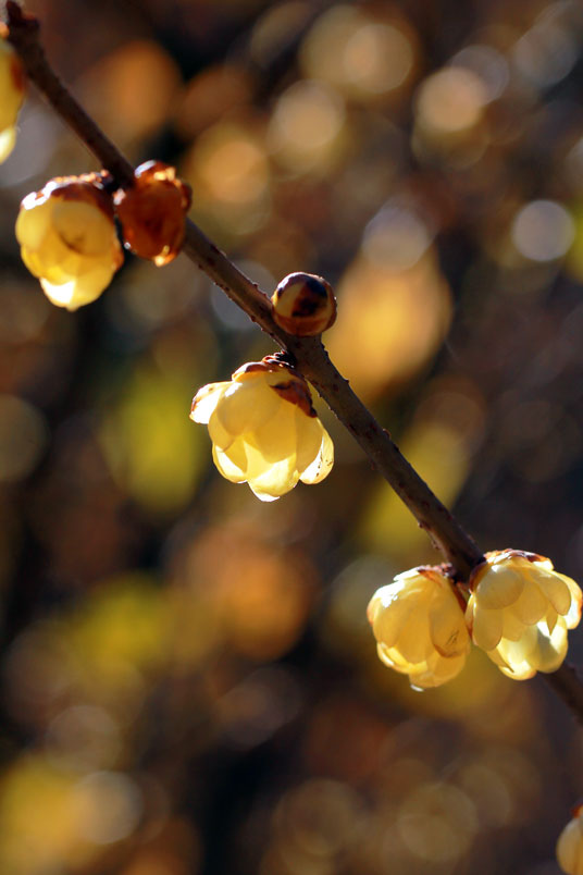 蠟梅綻放時極為含蓄嬌羞,花瓣一片片慢慢打開,在陽光映照