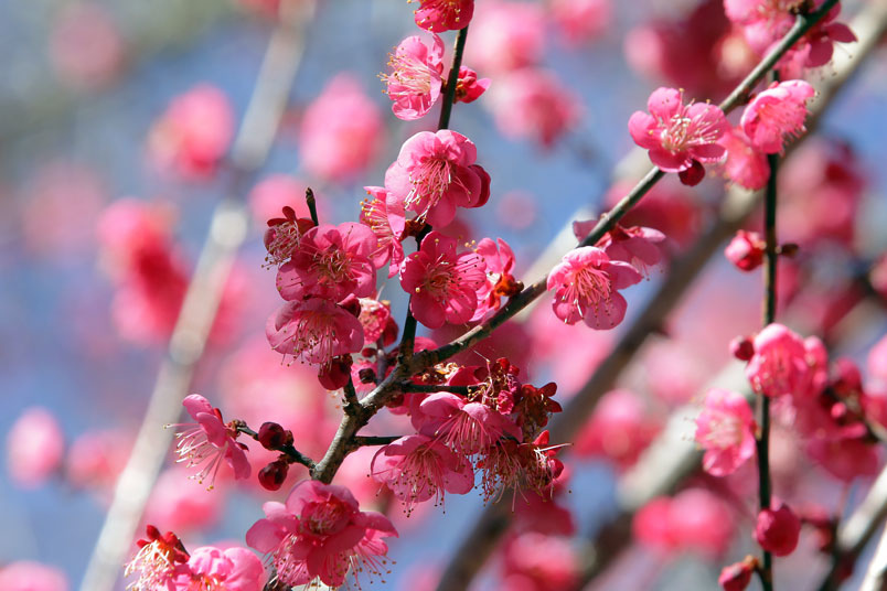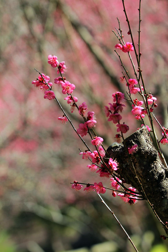 故作小紅桃杏色,尚餘孤瘦雪霜姿。