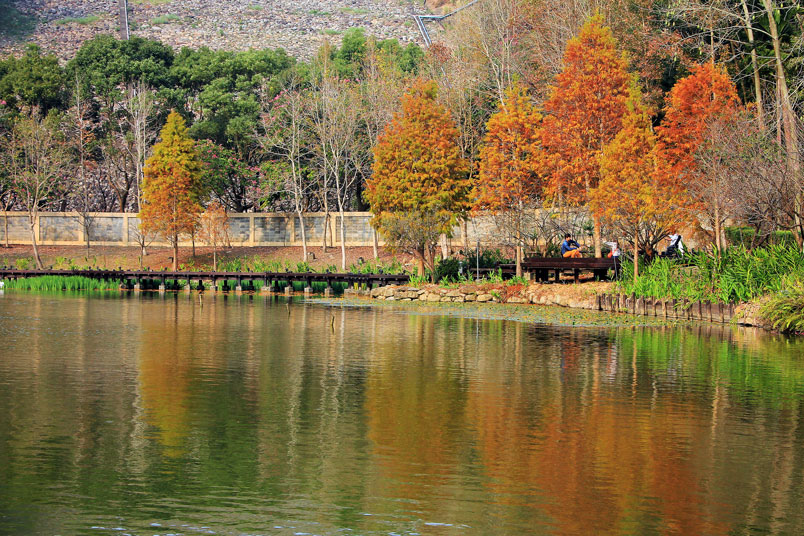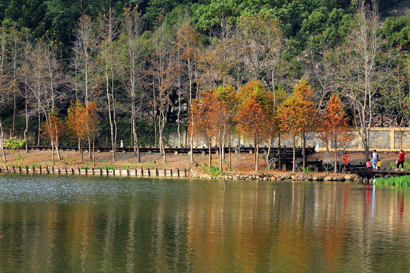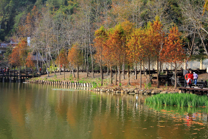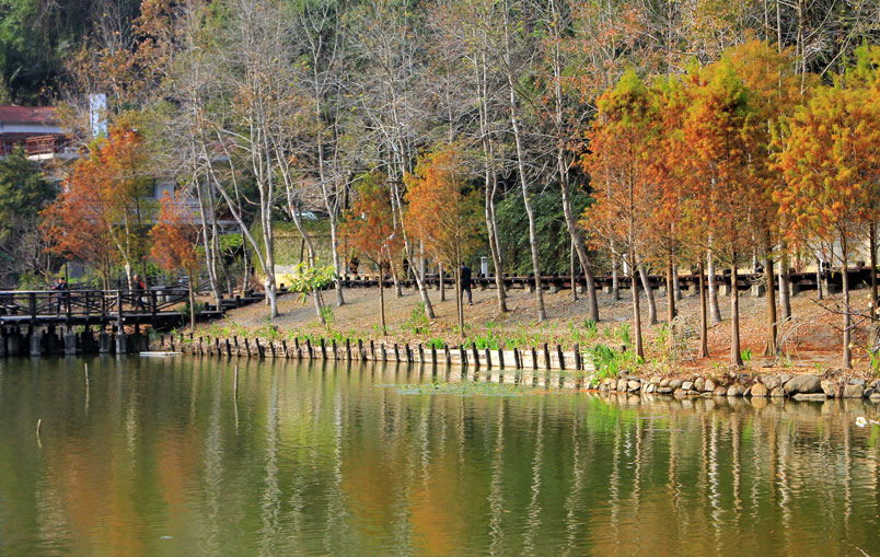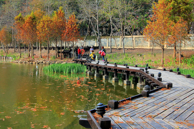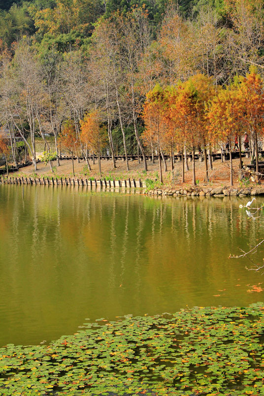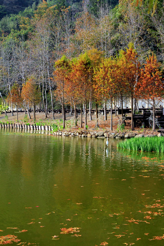 或生態池。尤其冬日那幾株轉紅的楓紅與落羽松,更為這美麗