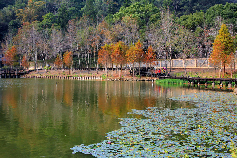 環池畔則見林木掩映,更像是特意為遊人賞景闢建的造景水池