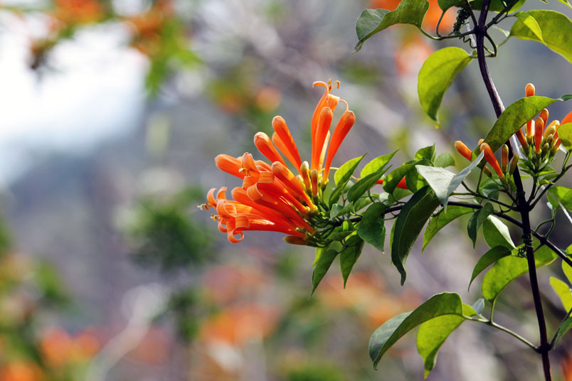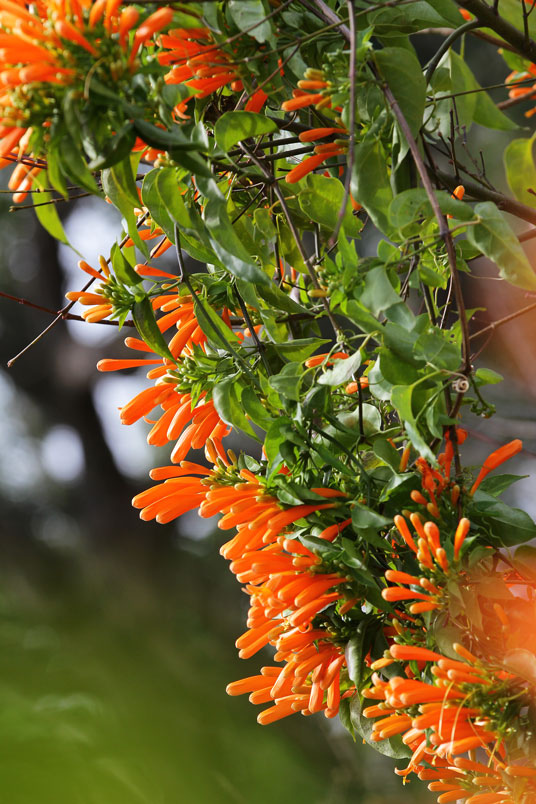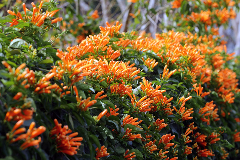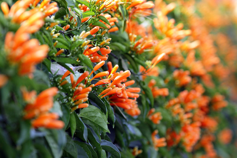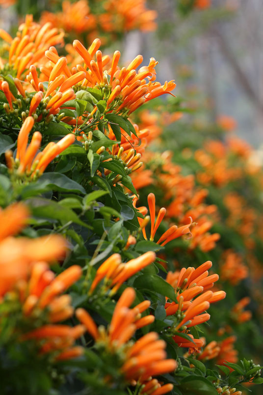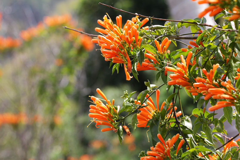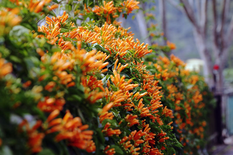 目前正是炮仗花的花期,數以千計的花苞及花朵聚集在一起
