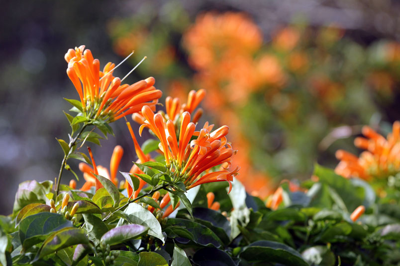 炮仗花除了花朵極具觀賞價值之外,葉子也是周年長綠,攀