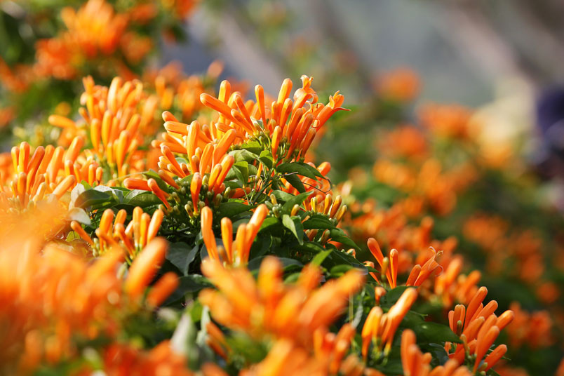 ,只見一片橘色花海,連葉子都被淹沒了。花朵在陽光的照