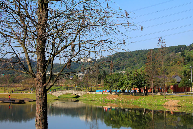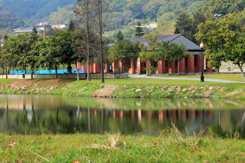 武嶺橋下的河濱公園,有管理中心、草坪、步道、水池,還有一座