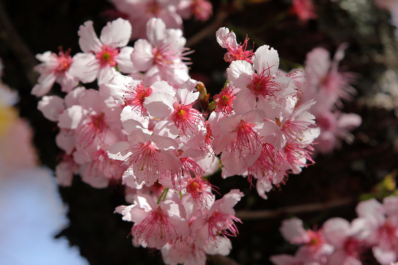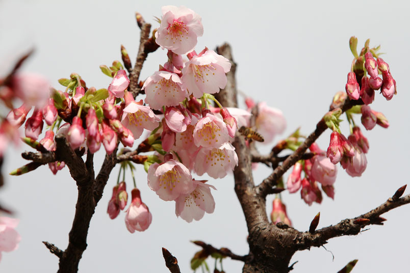 小園新種紅櫻樹,閒繞花枝便當遊。