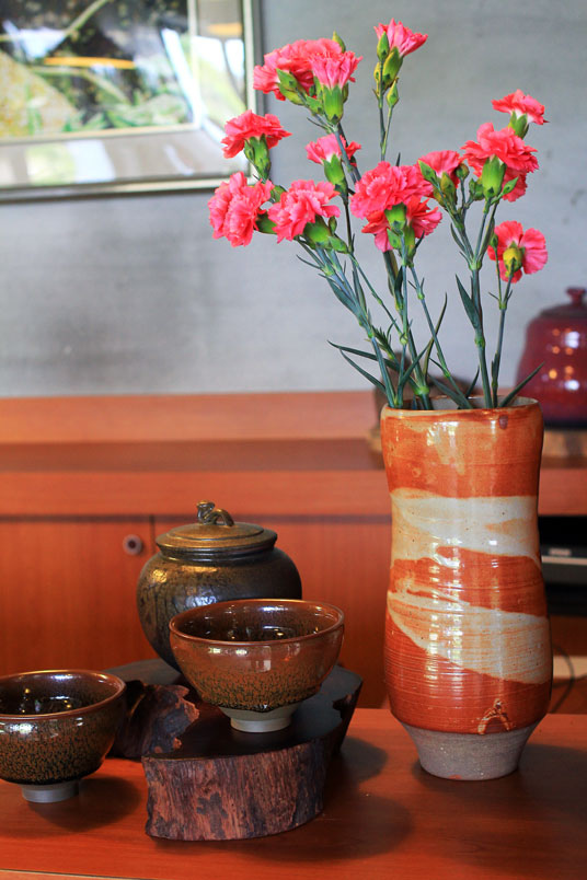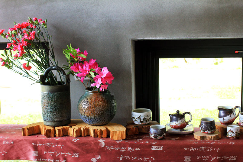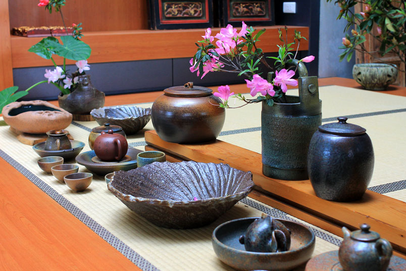 碗。夫妻倆人工作上的心血作品,就擺設在草堂四周,自然而