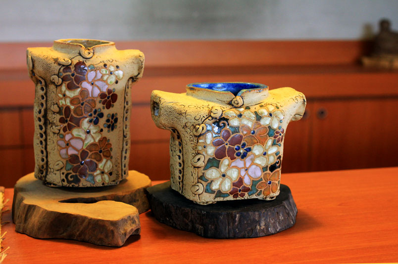 擅長手捏茶碗,將心中自然浮現的美,化作溫潤內斂的陶燒茶