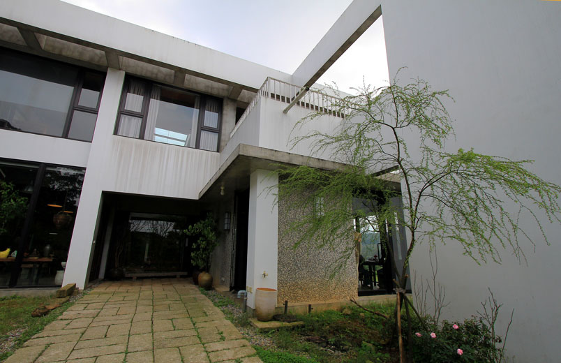 草堂就像聳立山間的一幅印象派畫作,綠意盎然的花園景緻,