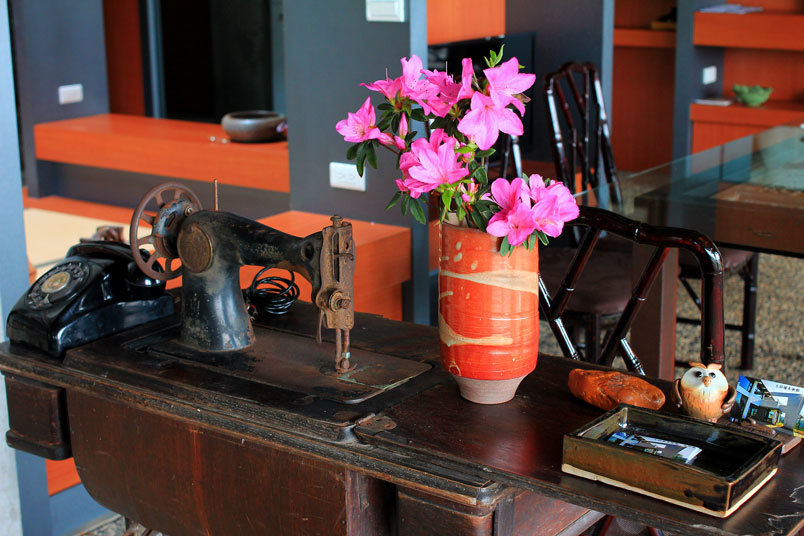 用老舊裁縫車改裝的桌子,這裡不管是裝潢和佈置,都很難想