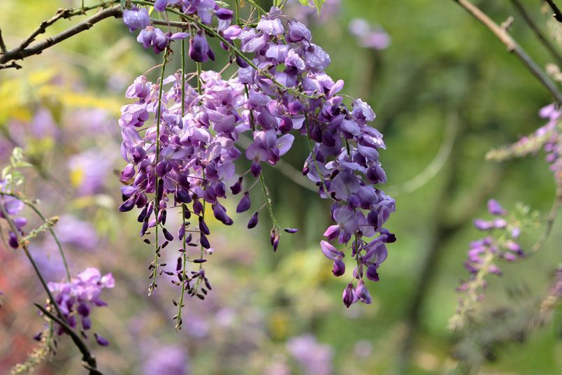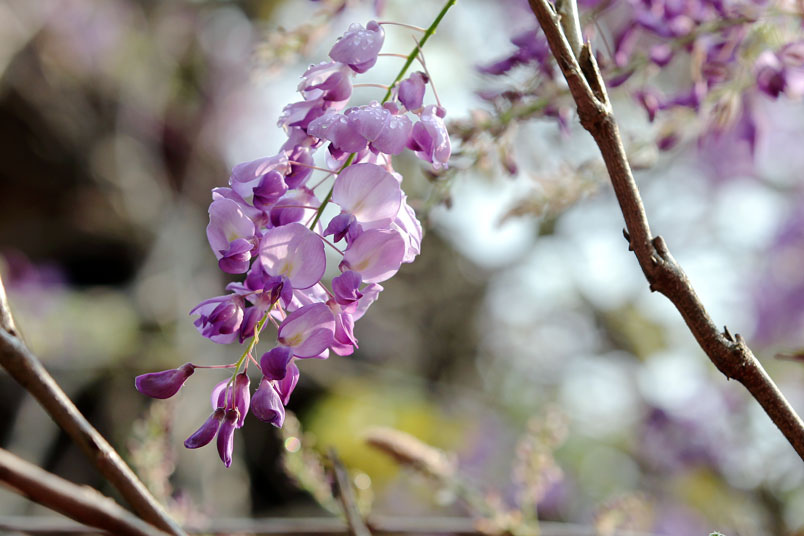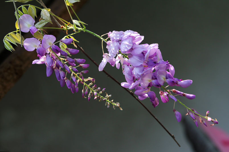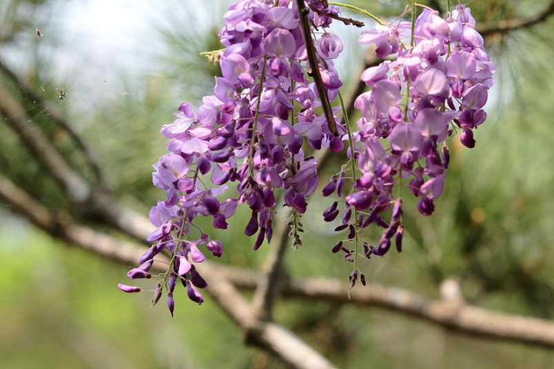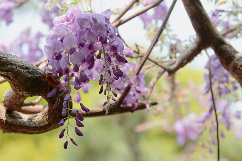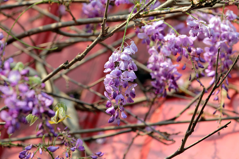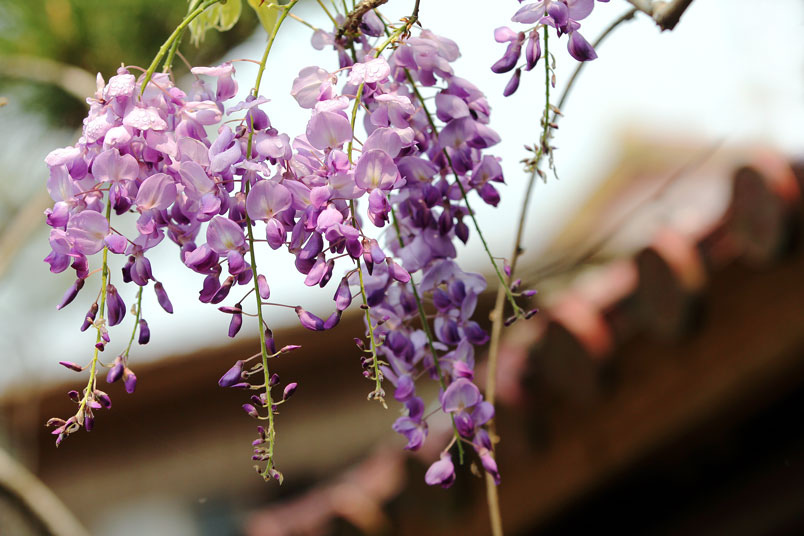 及工作室。每年的三月,紫雨紛霏飄似舞,向下懸垂開放的紫藤,