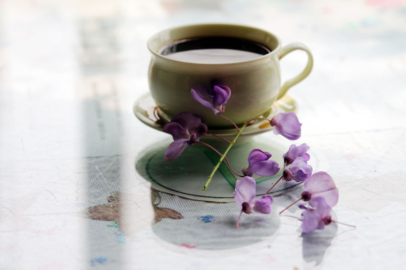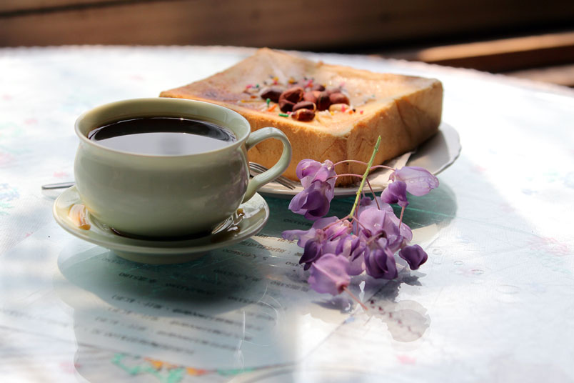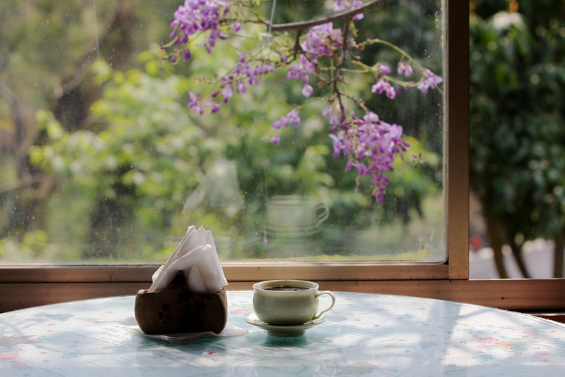 賞花喝咖啡。接到老闆娘的簡訊告知今年花已盛開了,趕緊前往,