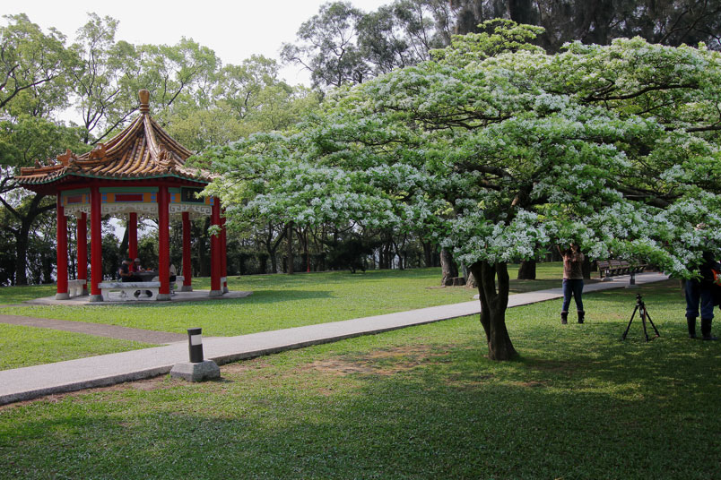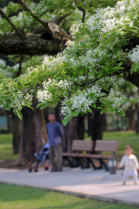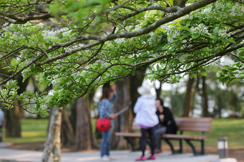 水資局流蘇花開了,到大草坪席地而坐,帶著野餐,仰望流蘇花序,