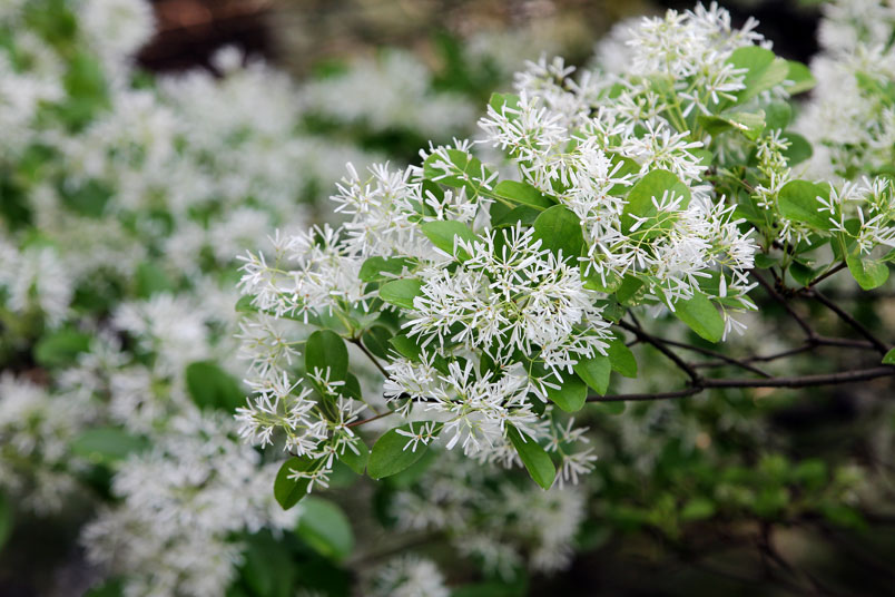 放,如古代仕女服飾上點綴的流蘇而得名。花兒綻放枝頭,宛如百雪