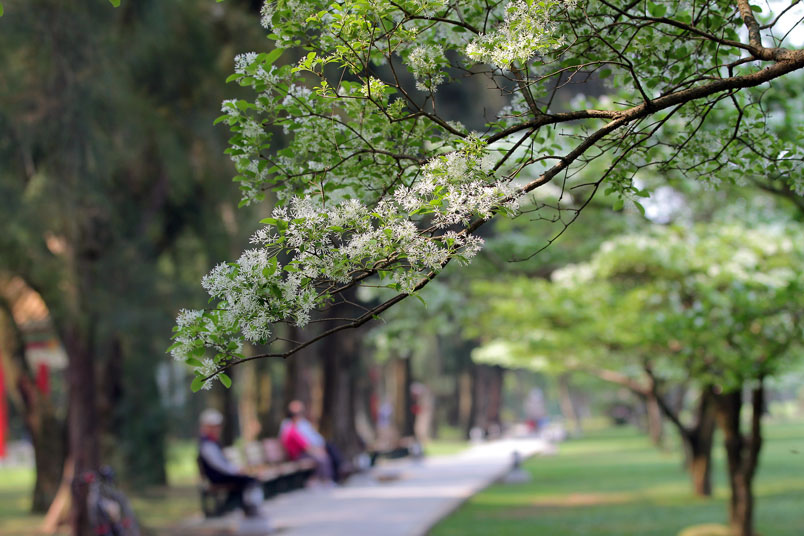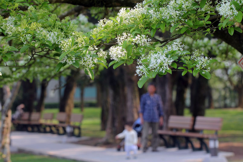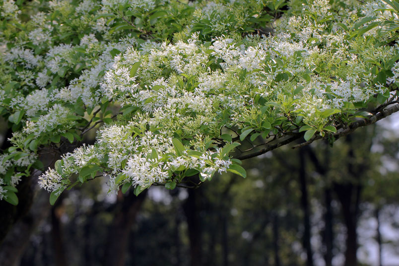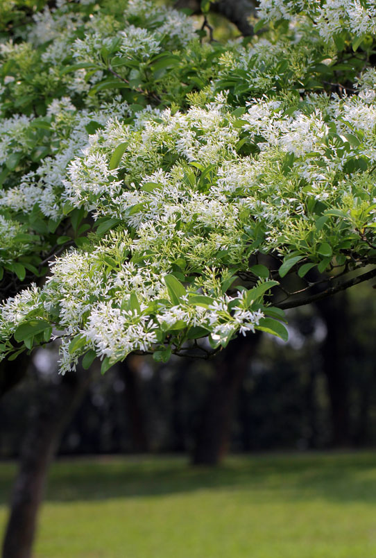 流蘇花期約三週,每到3、4月開花時滿樹雪白,細長密生花朵向上綻