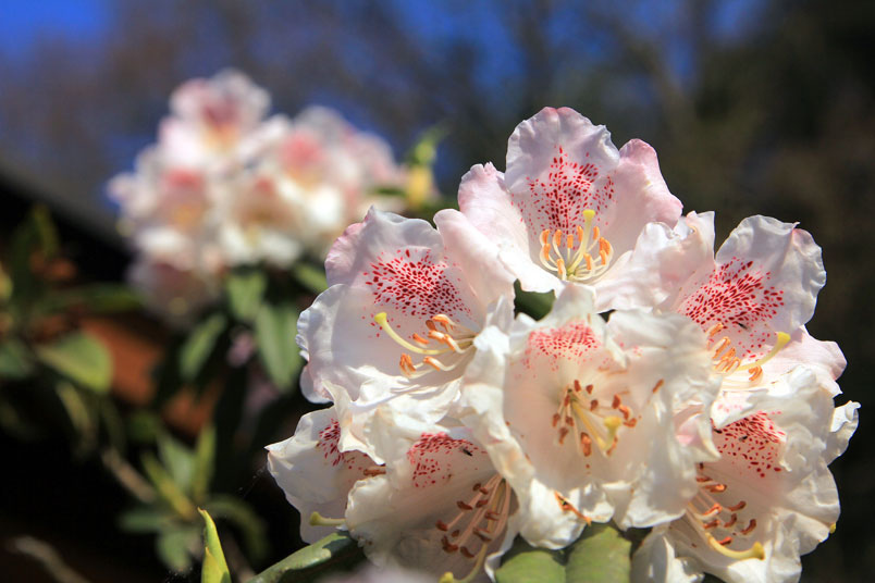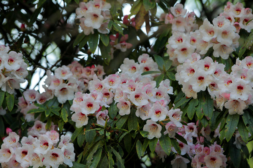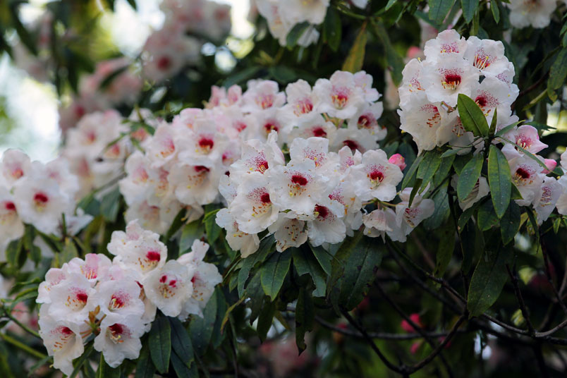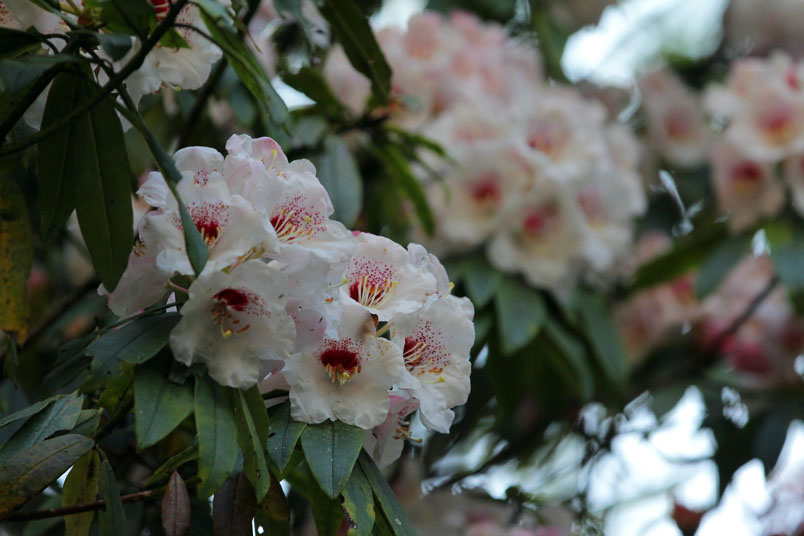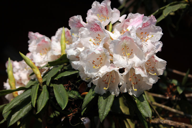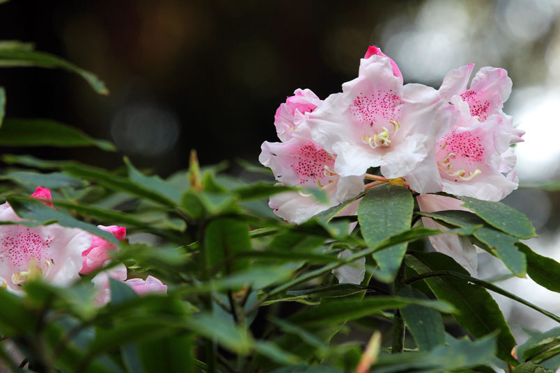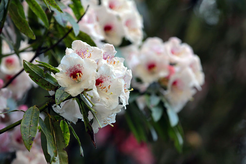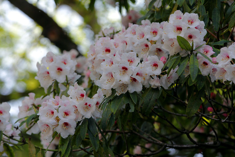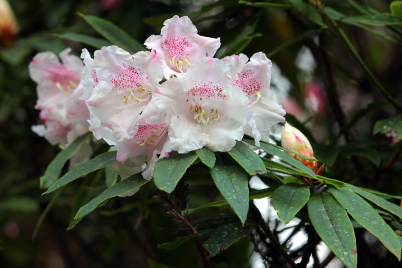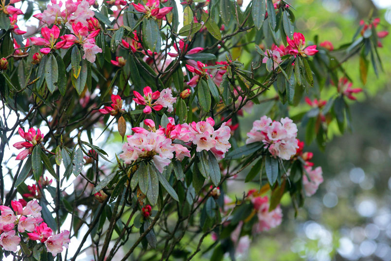 ,十幾朵的森氏杜鵑叢生在小枝條上,點點嫣紅往往讓遊客驚艷不
