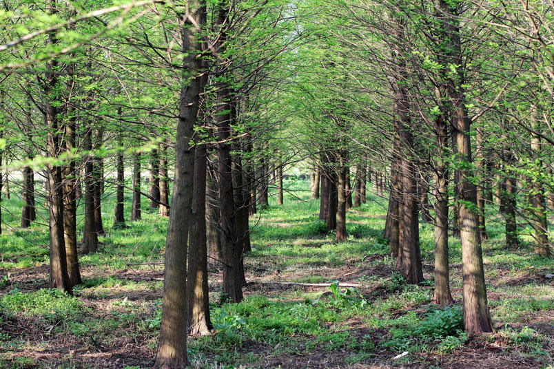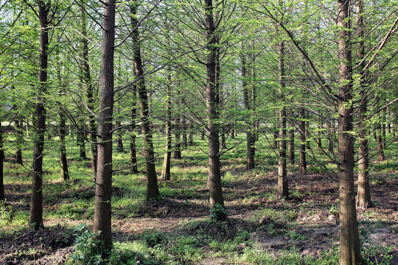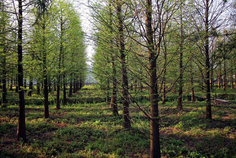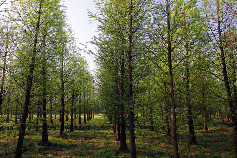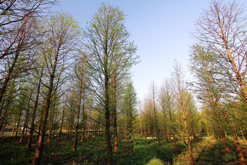 微風林間吹拂,陽光輕輕灑落,新葉翩翩起舞,翠綠盈