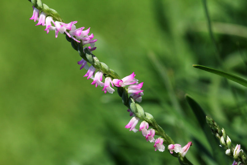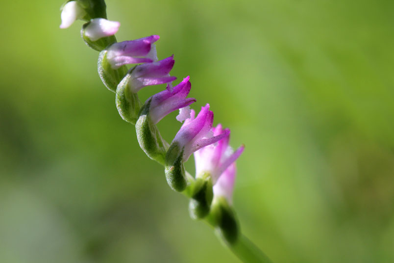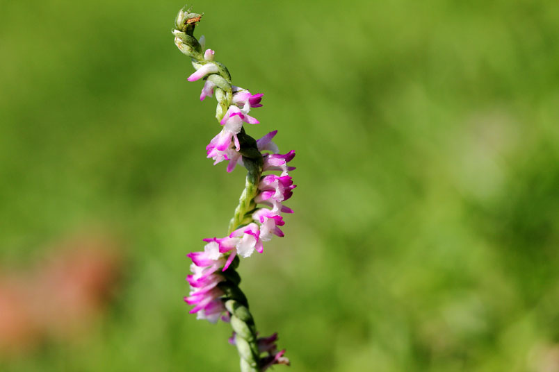 綬草是一種迷你型的野生地生蘭,花朵旋轉著生於花軸,花冠