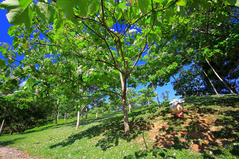 雖然花開只有兩成,但晴空下的油桐林綠油油的,令人賞心悅
