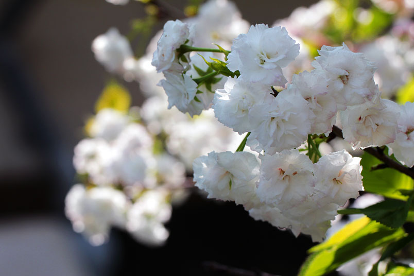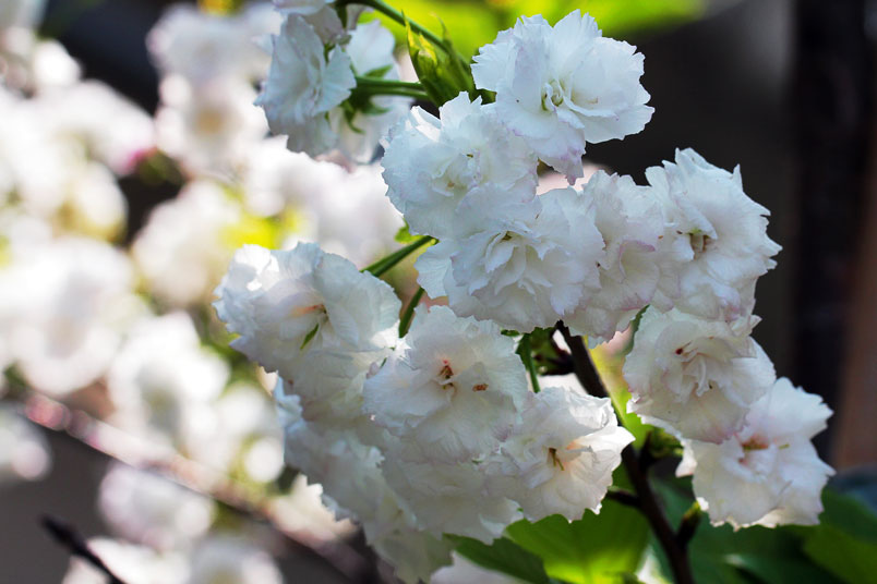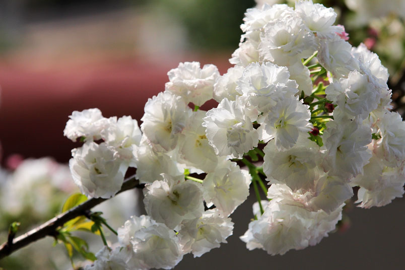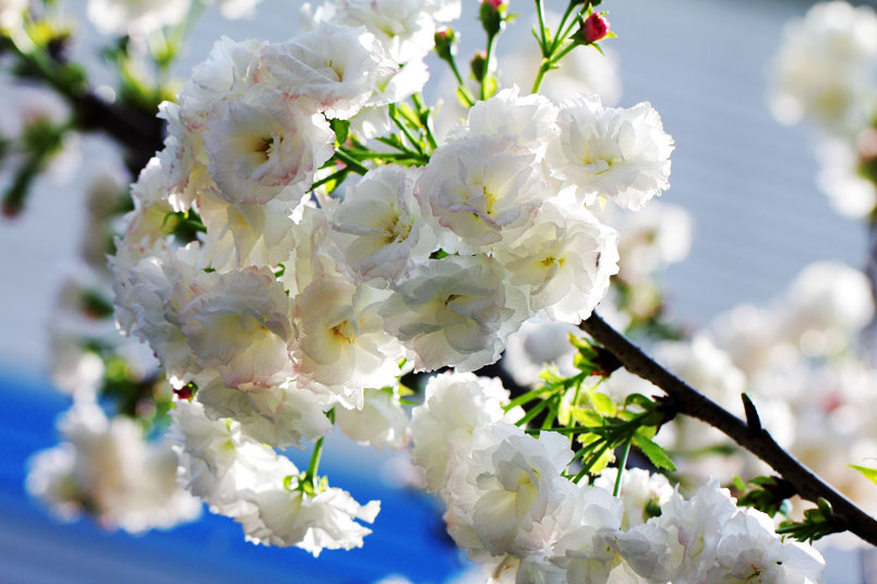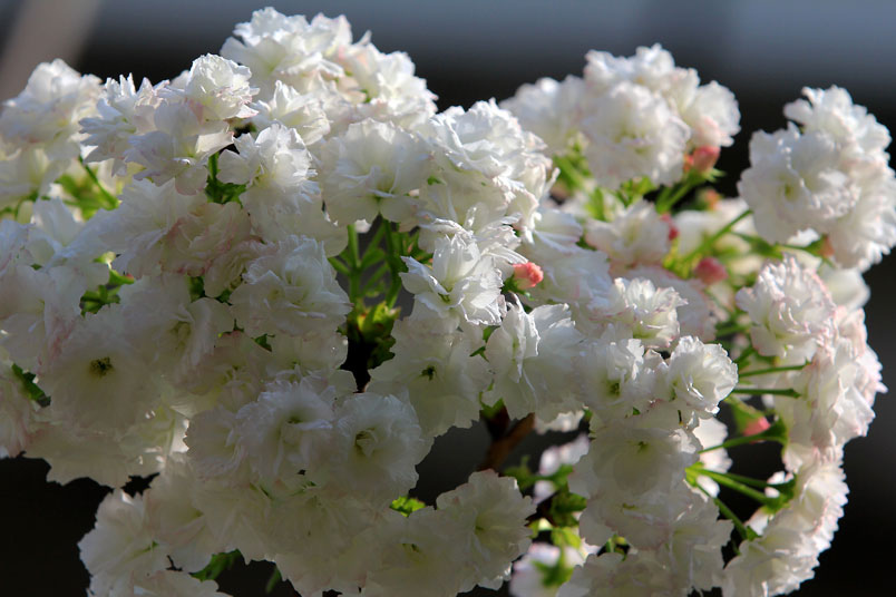 四月份是松月櫻盛開的花期,看那枝頭上結滿粉紫的花苞,慢慢