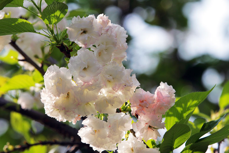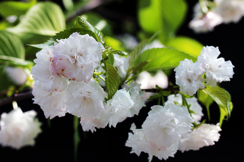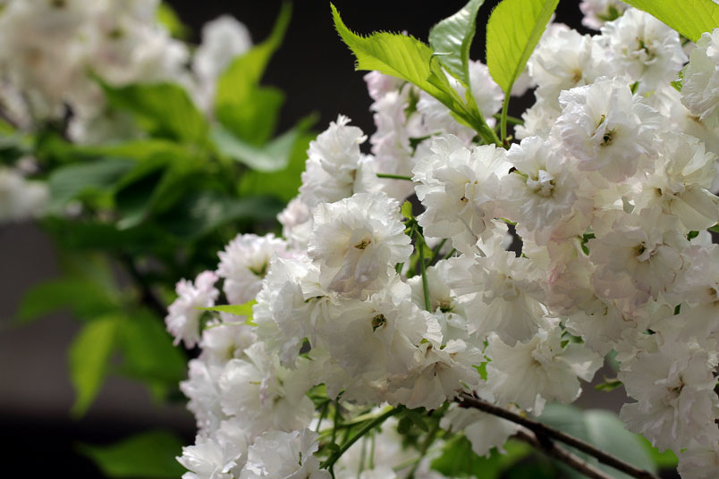 的綻放出重瓣的花朵,像朵朵花球一般,由粉紫轉變為純白,真
