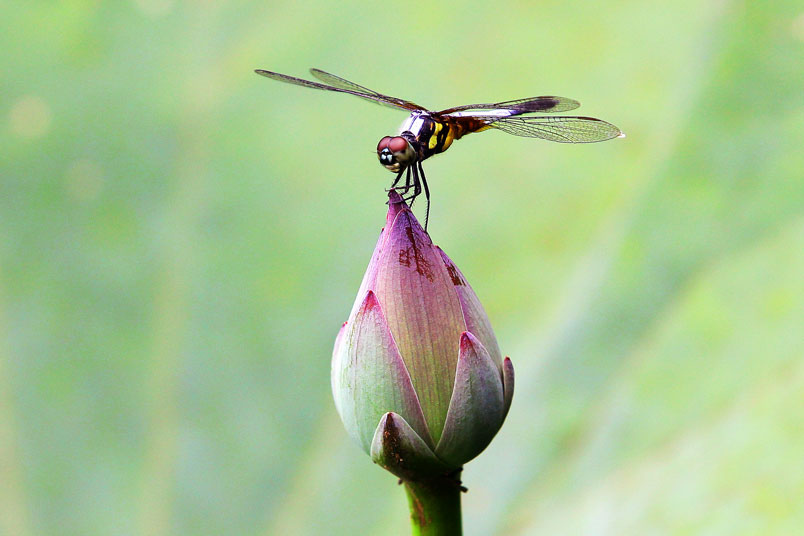 泉眼無聲溪細流,樹蔭照水愛晴柔。小荷才露尖尖角,早有蜻蜓立上頭。