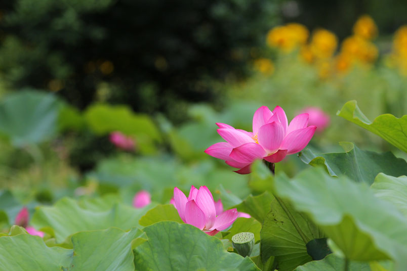 荷花池旁還有向日葵,也可以一併入鏡。