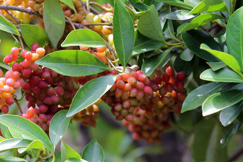 滿樹串串珠紅,玲瓏可愛,果實可供鳥類食用。