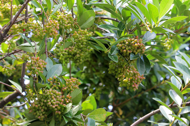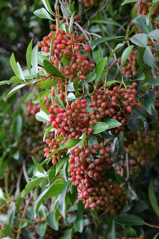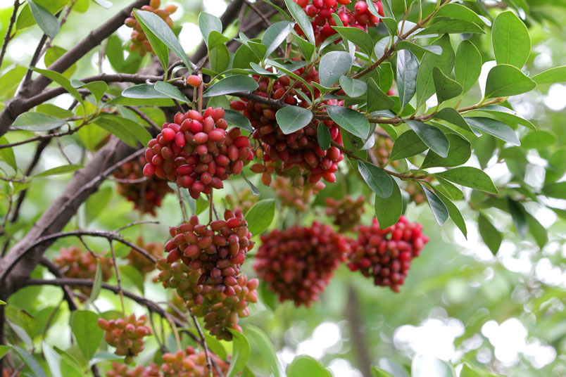 核果橢圓形,果熟變珊瑚狀紅色後再變紫褐色,4~7月間