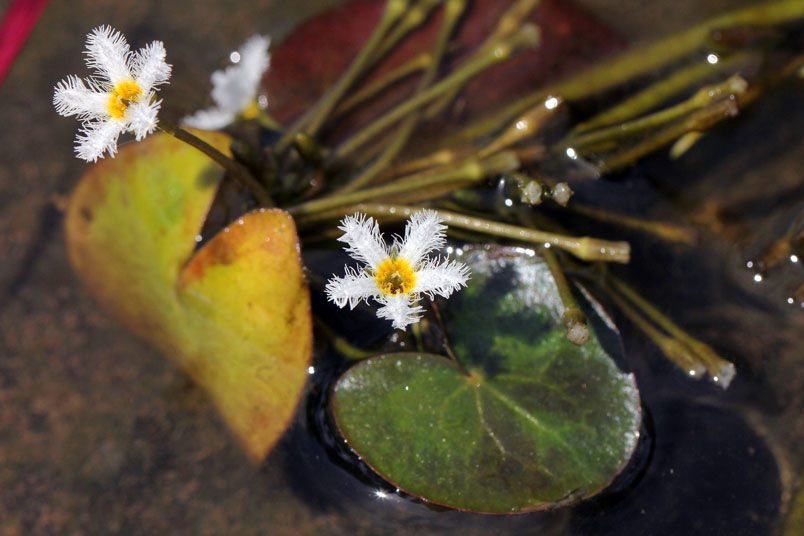 5枚,花藥黃色,雌蕊柱頭2分歧。是台灣莕菜裡面體型最小的,