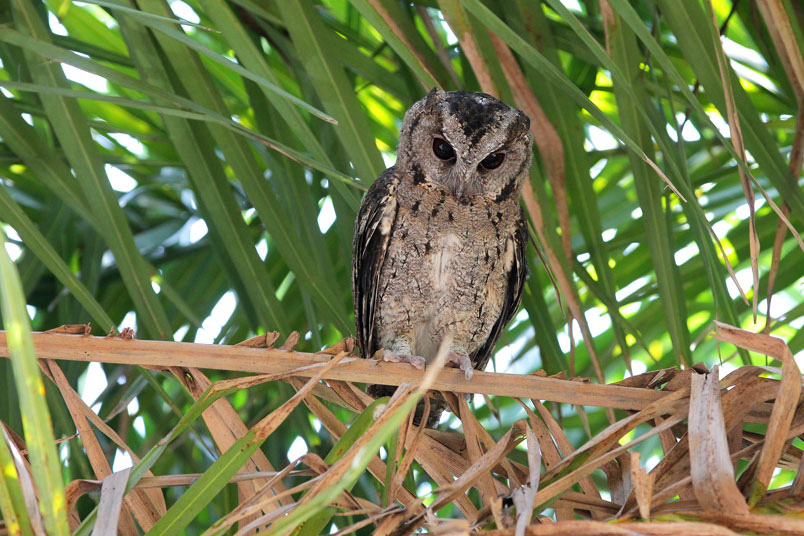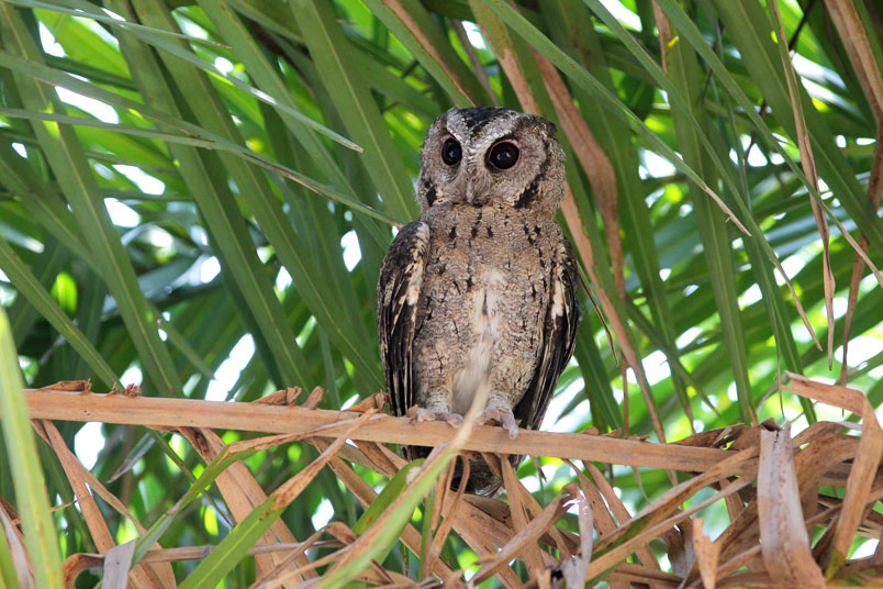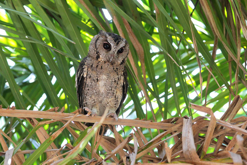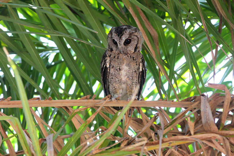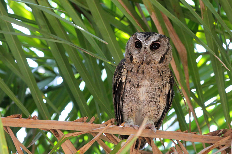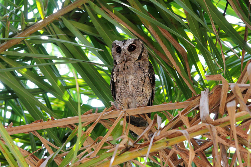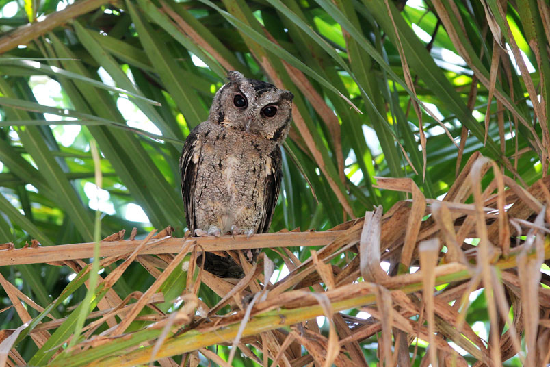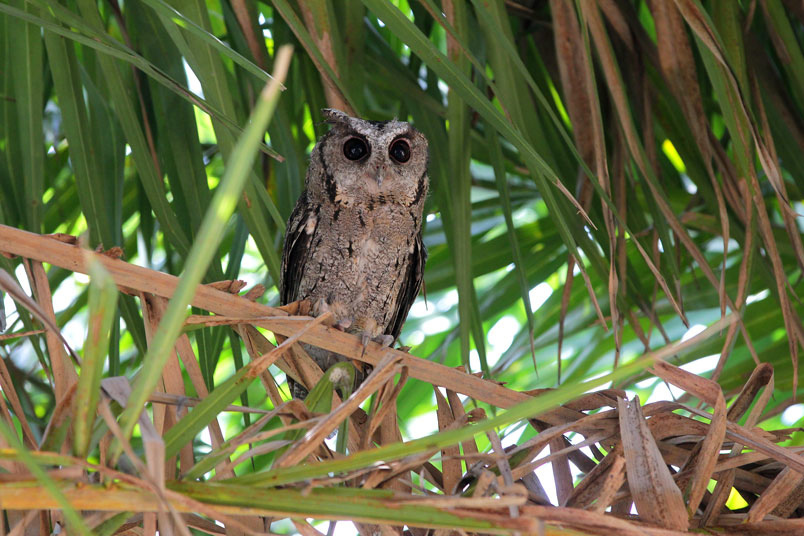 全身大致呈灰褐色的領角鴞是台灣地區分布最廣泛,也最有機會