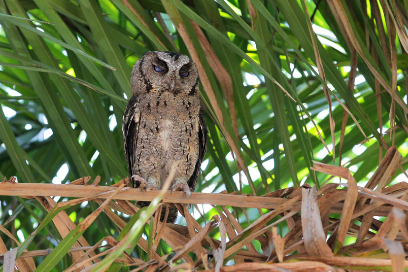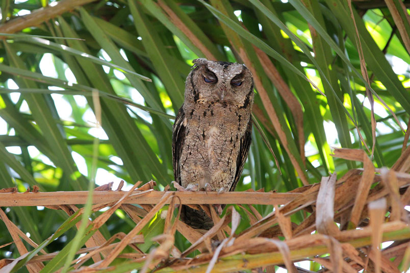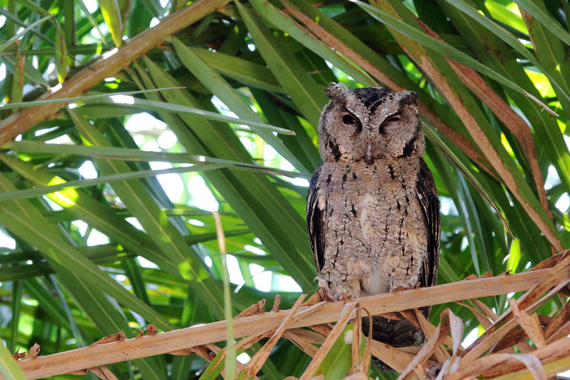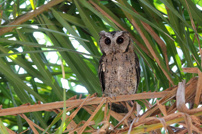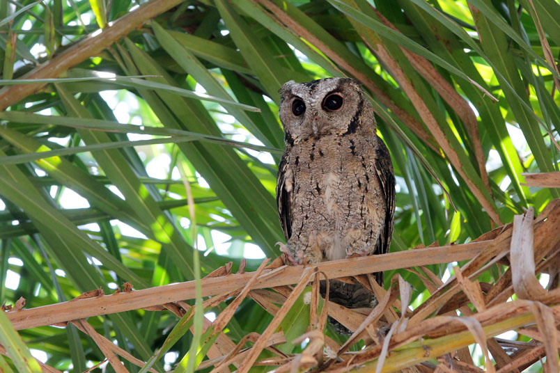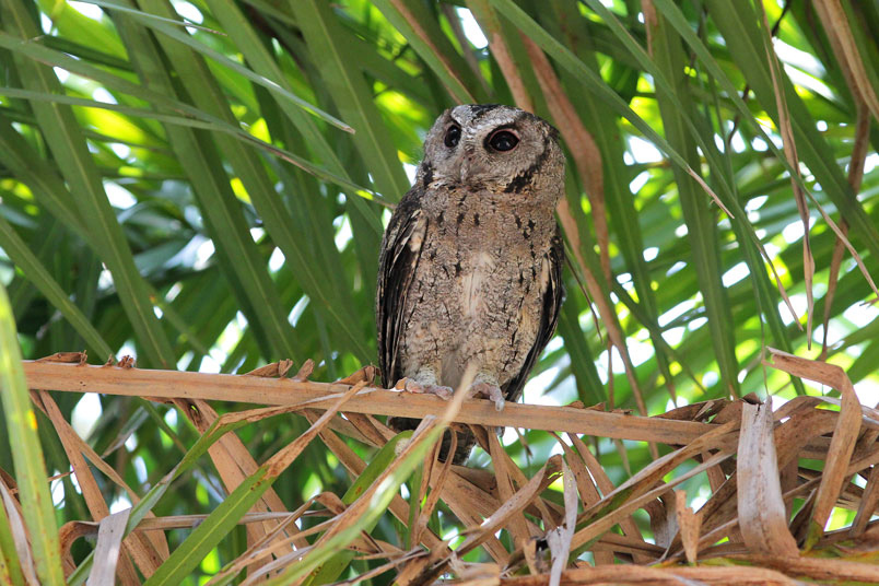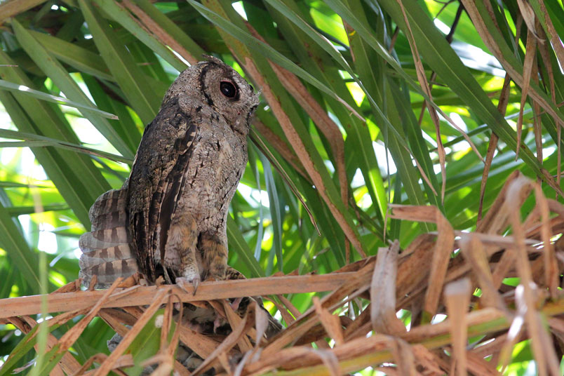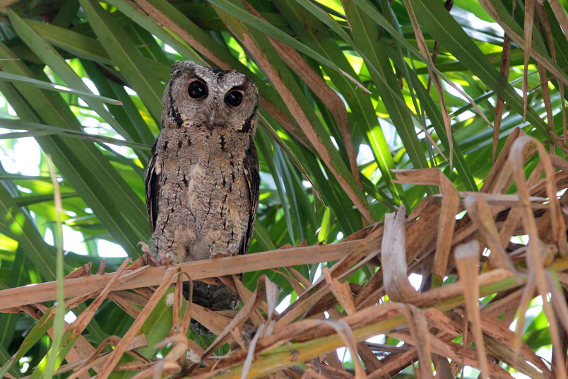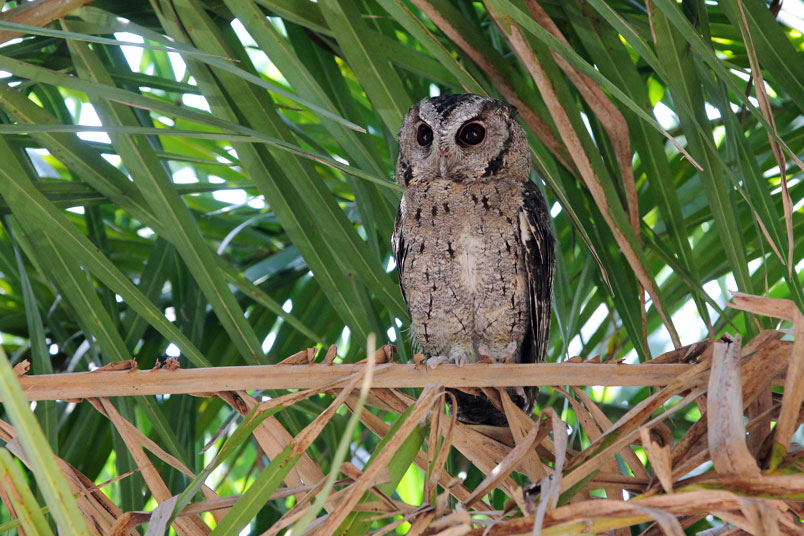 全身大致呈灰褐色的領角鴞是台灣地區分布最廣泛,也最有機會