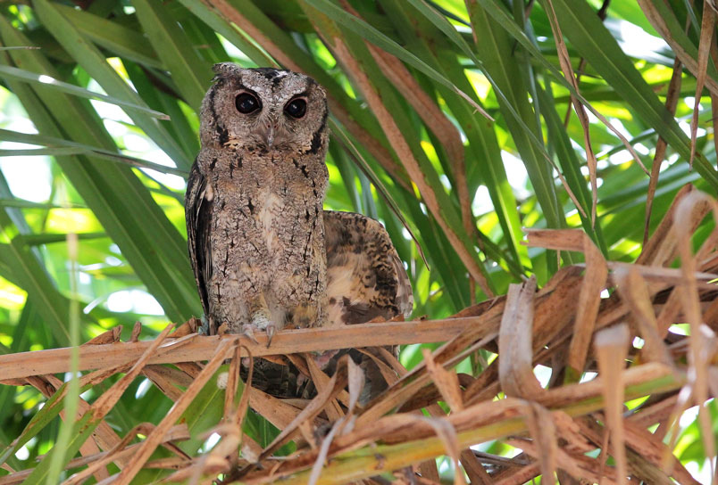 領角鴞是一種小型的貓頭鷹,體長約 25 公分,腹部密布褐色斑