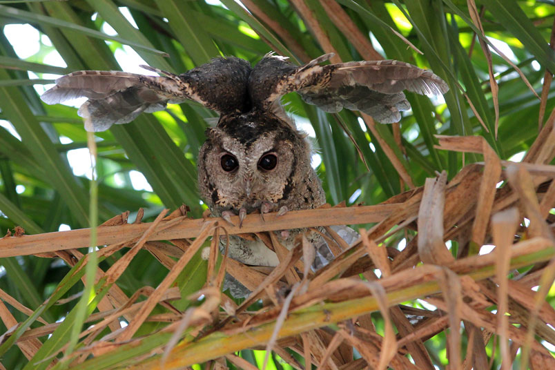 也會發出低沉微弱的「噠!噠!噠!」的聲音。領角鴞對於人類