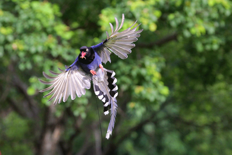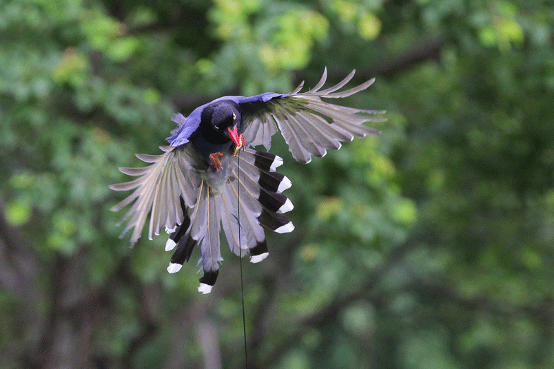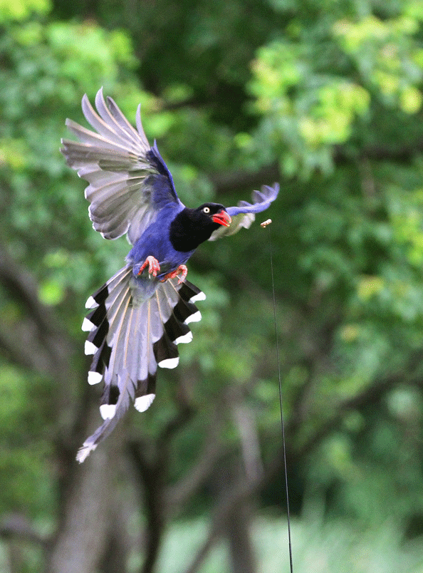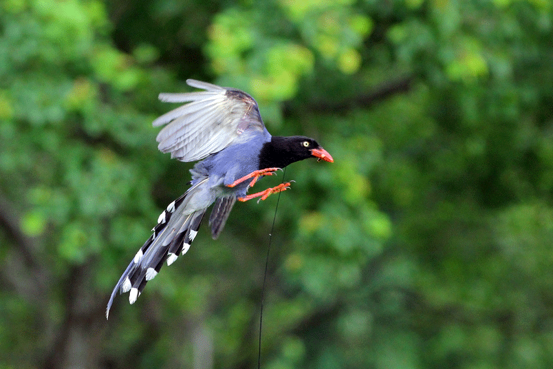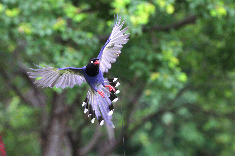 台灣藍鵲,鄉土名「長尾山娘」。棲息於低海拔山區,活動於