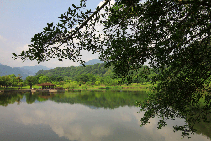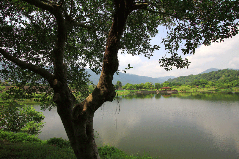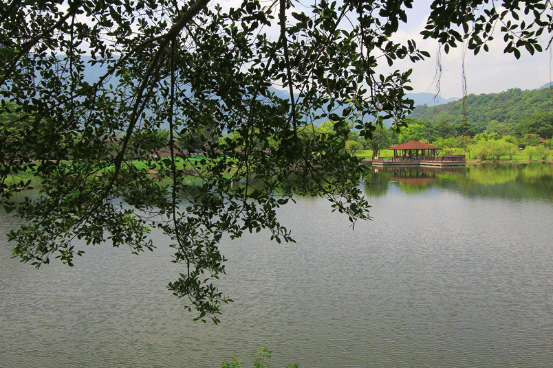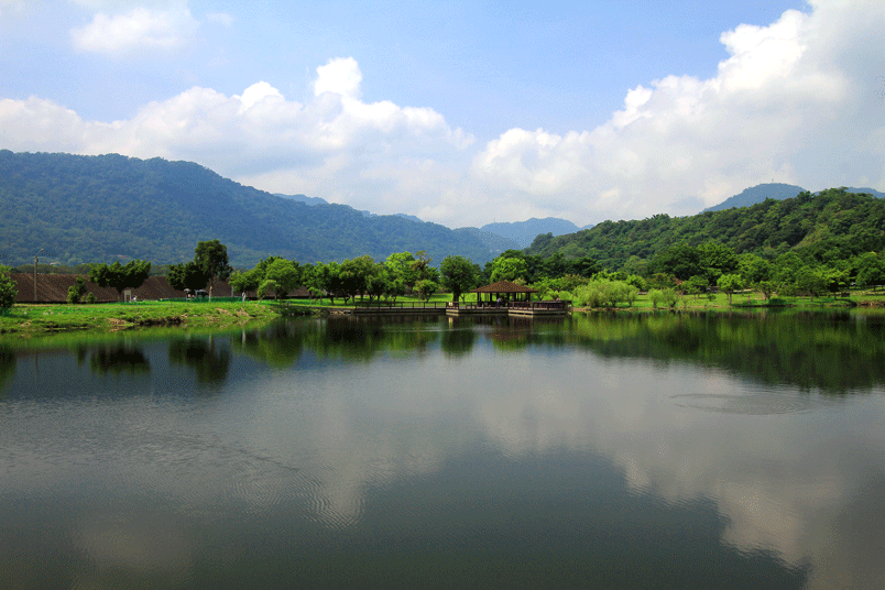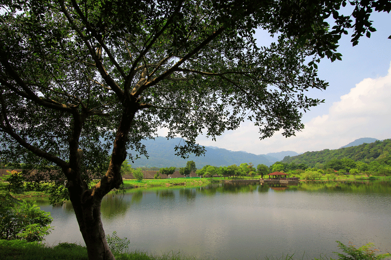 鄰近石門水庫大壩,寧靜的湖光山色讓園區顯得寧靜,景色優美,