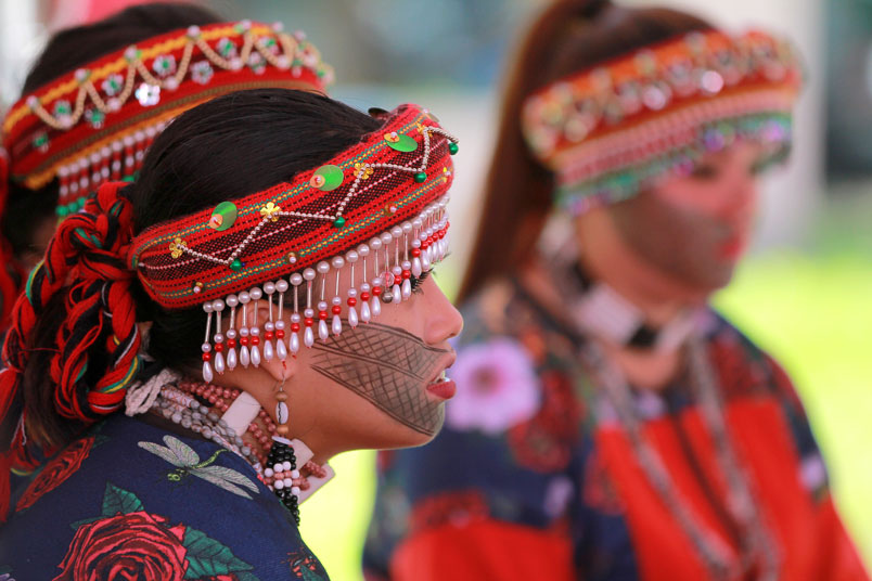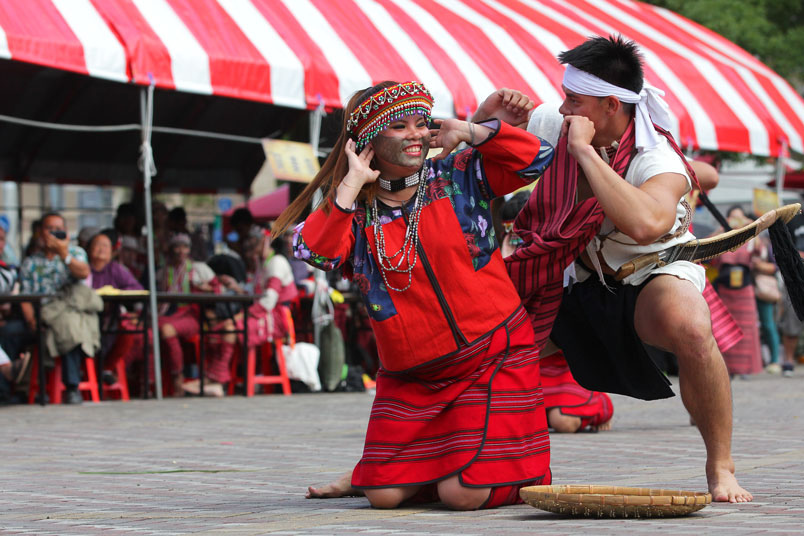 會型賽德克族祭典。現場賽德克族男性配刀、賽德克族女性
