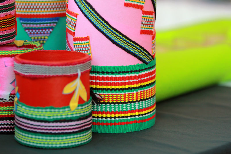 鑲花邊為主。紅色是賽德克族人的最愛,紅色代表血液,也代