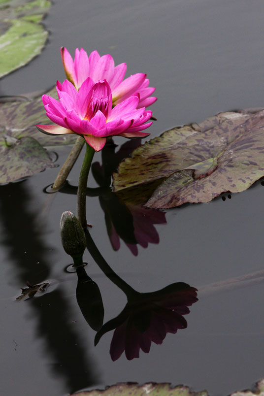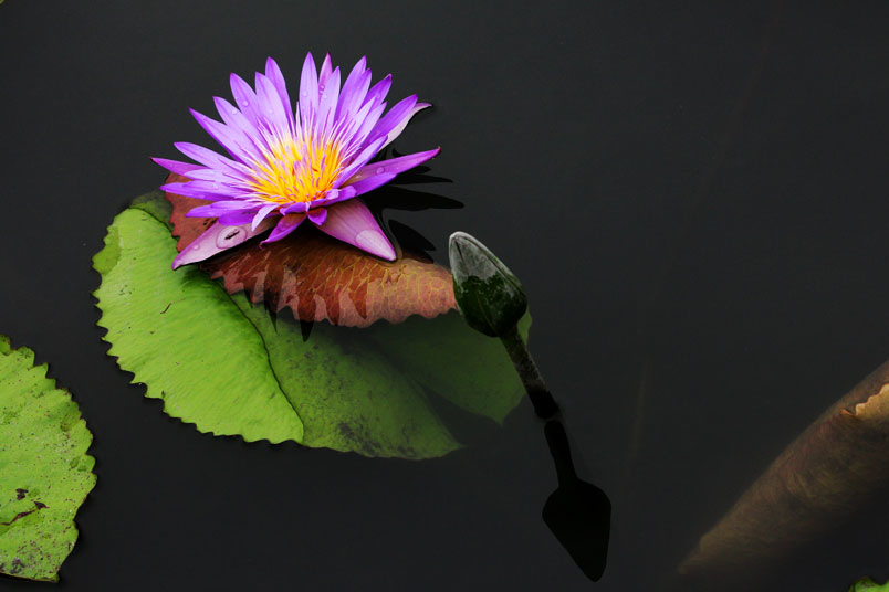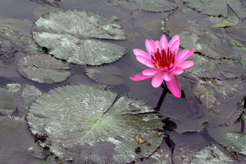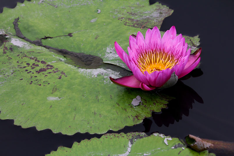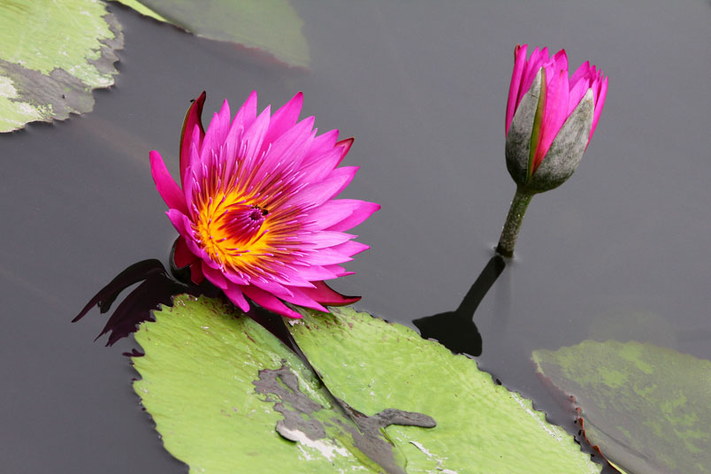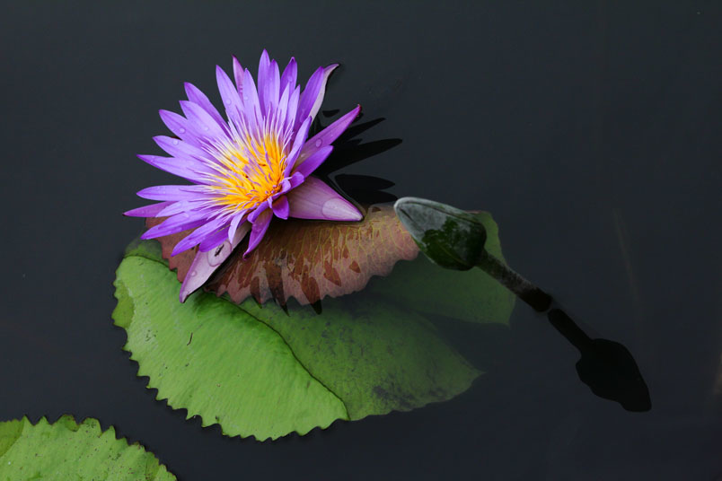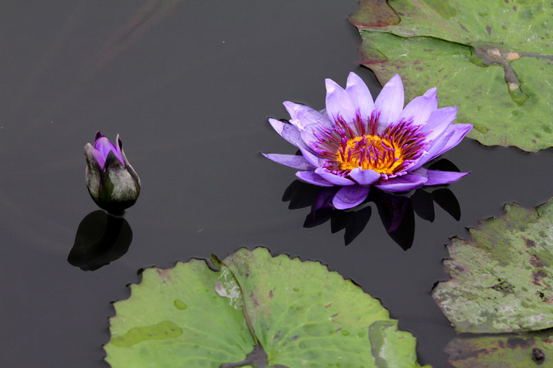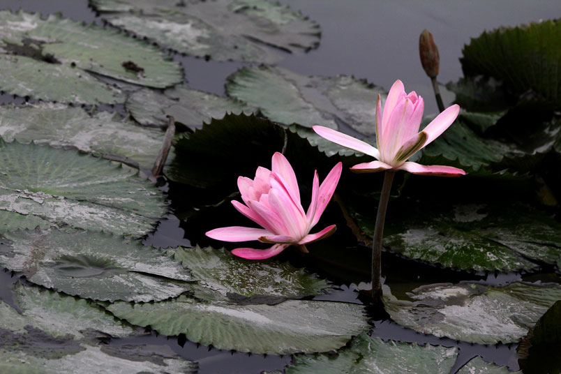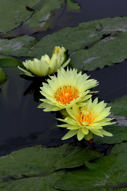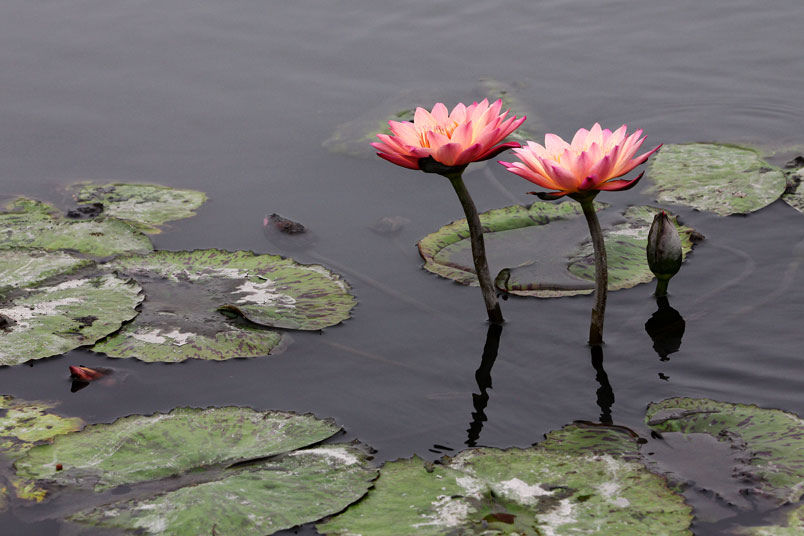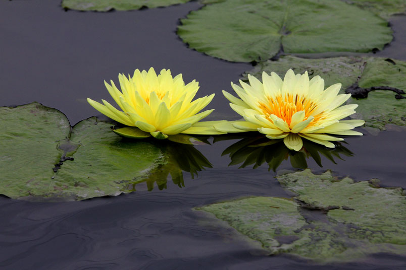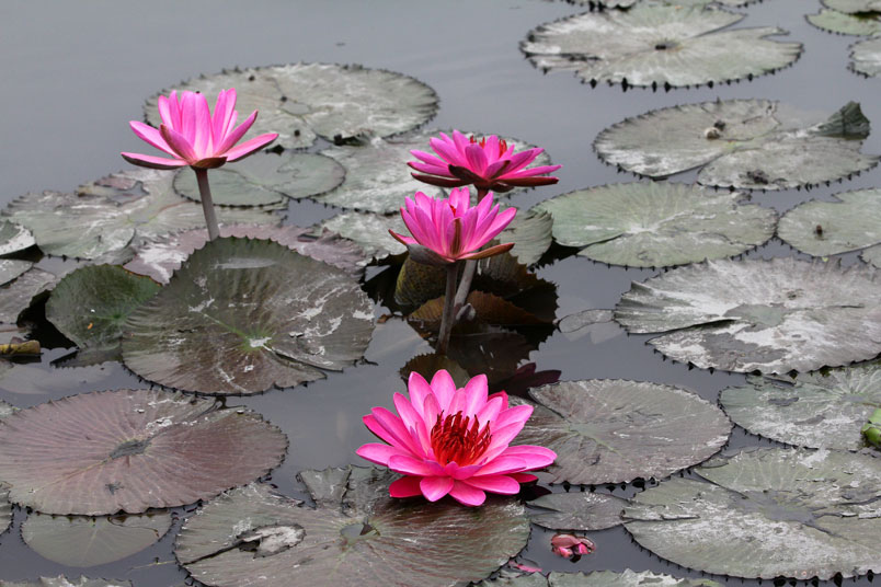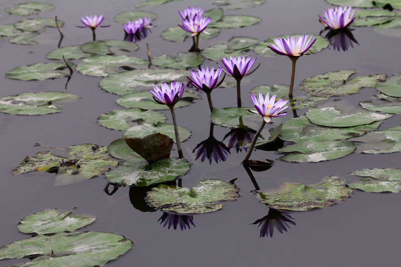 睡蓮的葉片緊貼水面,依種類不同有的在冬季會休眠或是