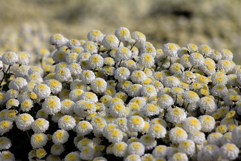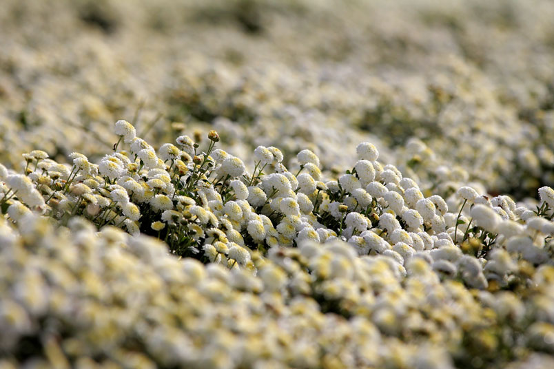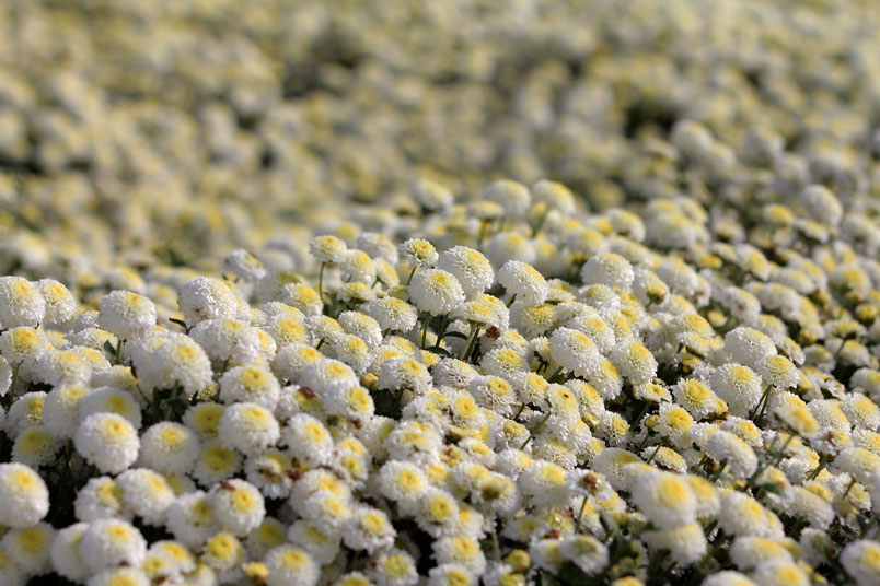 菊農通常在三月開始育苗,並採黃白等色花交錯栽種,十一月