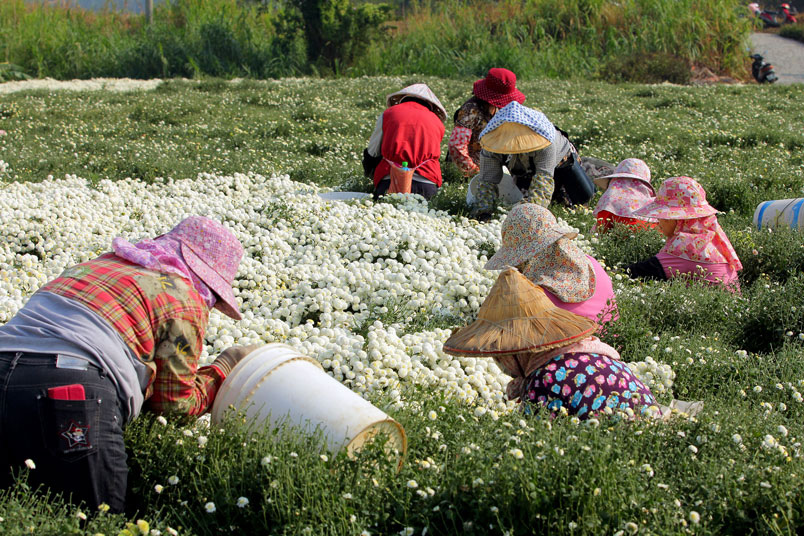 天綠野間綻放,經常可看到帶著斗笠的農婦忙碌採花,成了銅