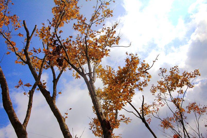 現在尚不到滿山遍谷的楓紅季節,但羅馬公路的黃金楓已然