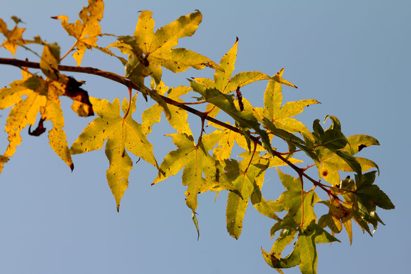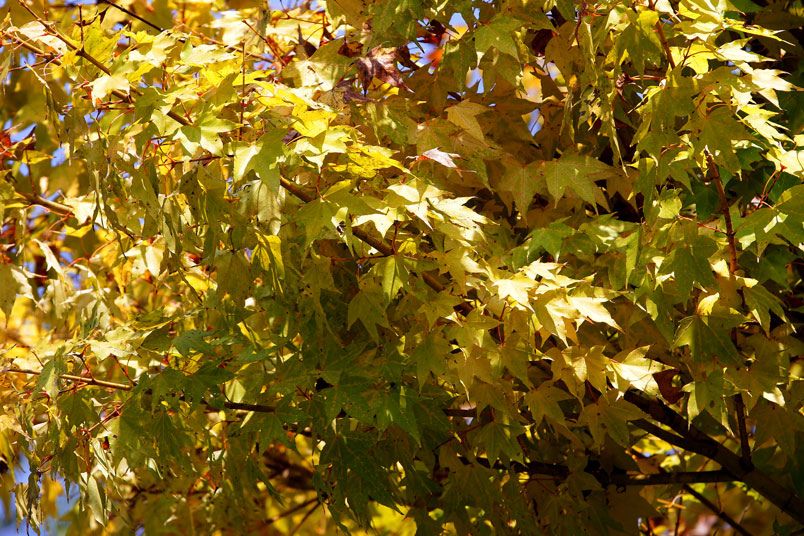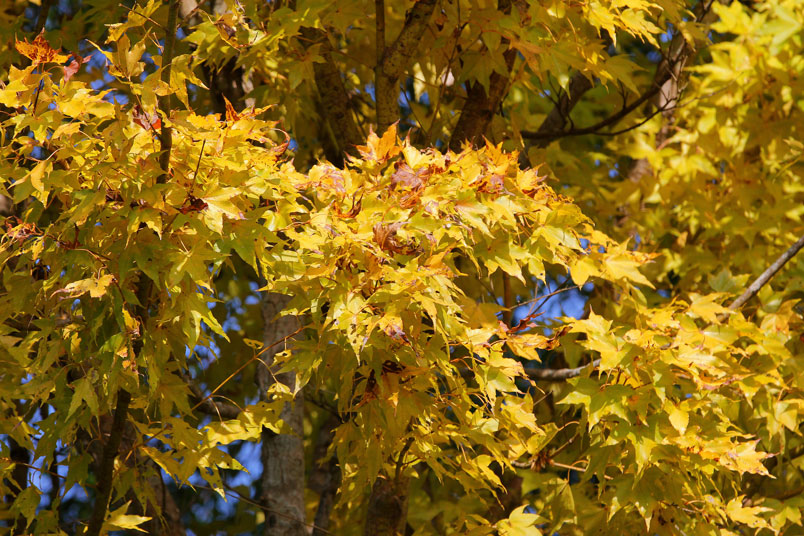 後1~2週開始落葉,而黃金楓變色後則可維持2個月不落葉,