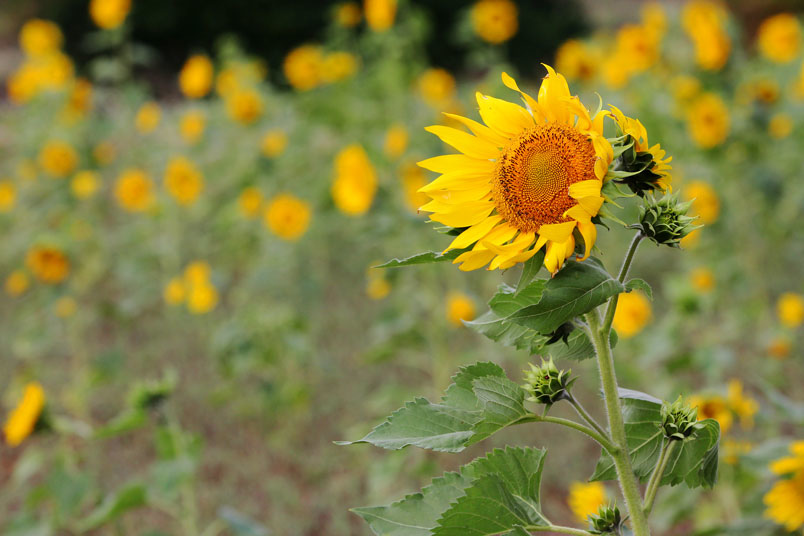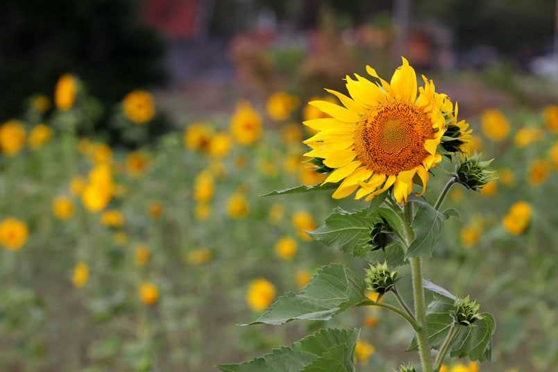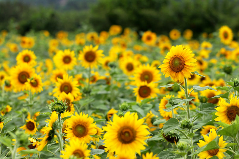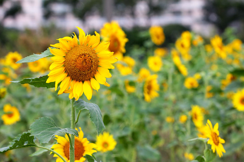 開花期間長,整齊又豔麗,而向日葵具有生長快速特性及