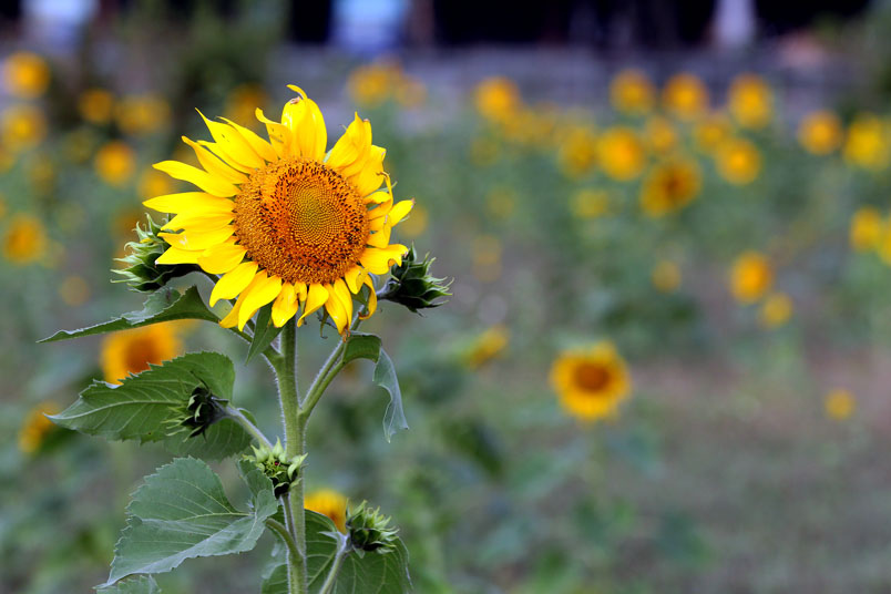 一旦太陽慢慢朝西方落下時,向日葵也總是會跟著它移動
